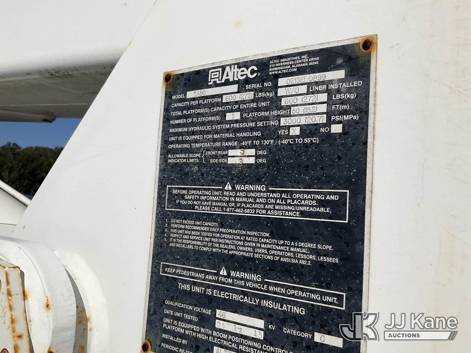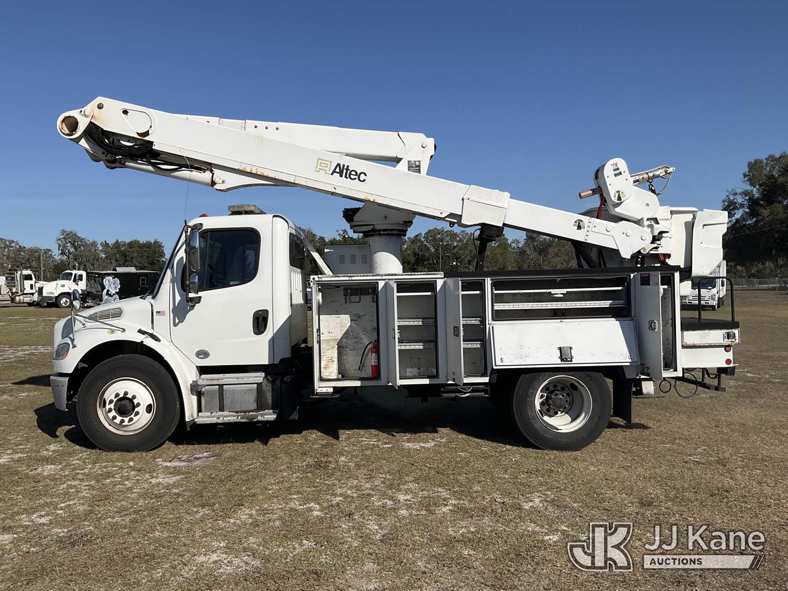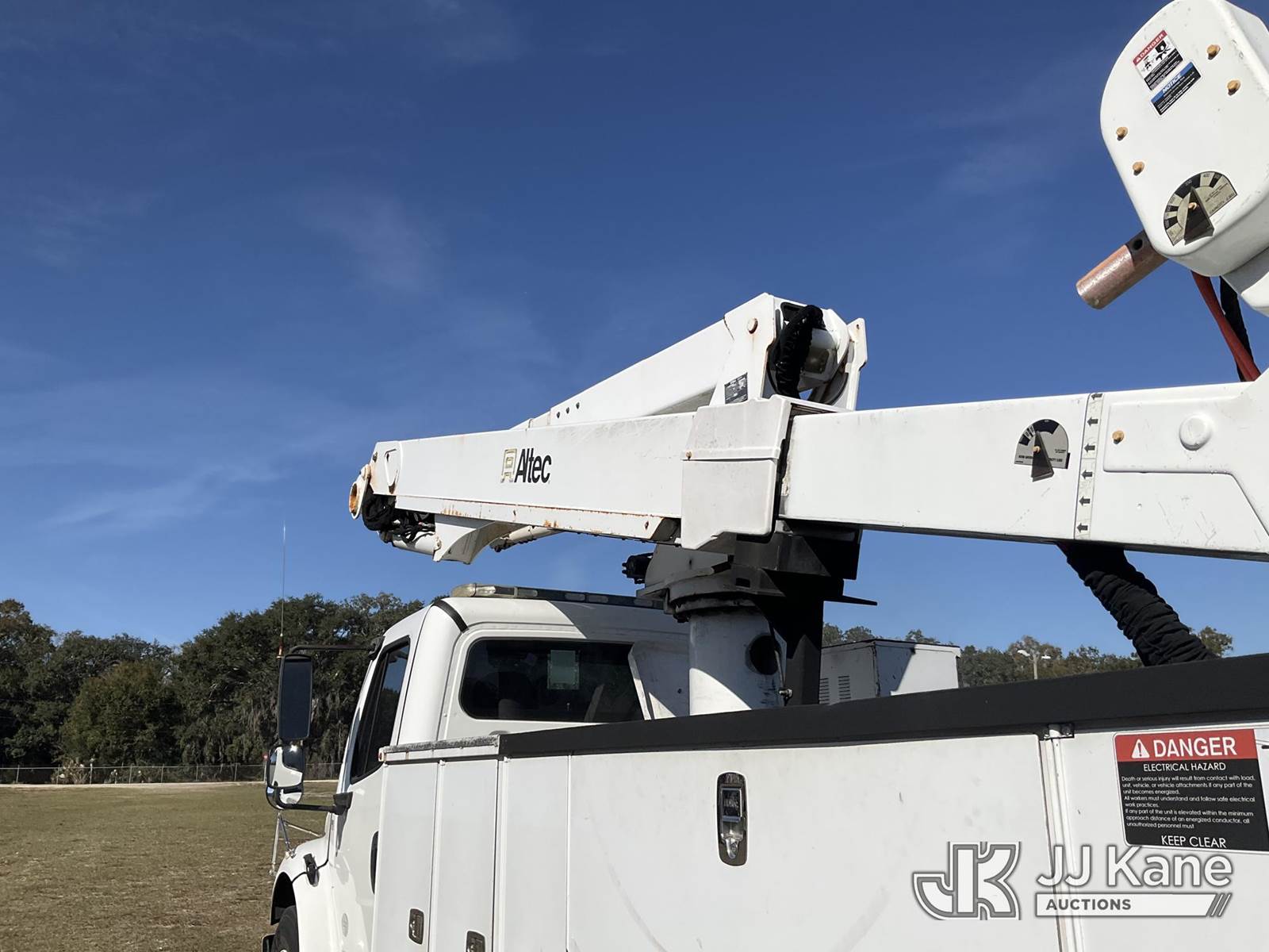 Altec TA50, 55 ft, Articulating & Telescopic Material Handling Bucket Truck s/n 0213EL0899 (YEAR 2013), with single-man bucket & 4 hyd outriggers, mounted behind cab on 2018 Freightliner M2 Utility Truck, 6.7L diesel, Auto, A/C, (112,209 miles) Manatee County BOCC Unit (Runs, Moves, Upper Operates) (Exhaust Leak) (remounted upper unit YEAR 2013) (May Require Height Permit To Transport) (Reads 10,723 hours) This is a Titled Item NOTE: This unit is being sold AS IS/WHERE IS via Timed Auction and is located in Thonotosassa, FL. Inspection & preview days for this unit are the 2 business days prior to the first day of items closing for this auction, item is located at 11720 N US 301 Thonotosassa, Fl 33592 and hours of operations are 8a-4p. For pre-sale questions, please contact Office Staff @ (813) 986-2485. (Manuals provided in cab) (Buyer is responsible for removal. Assistance by consignor or JJ Kane Auctions is not assured.)