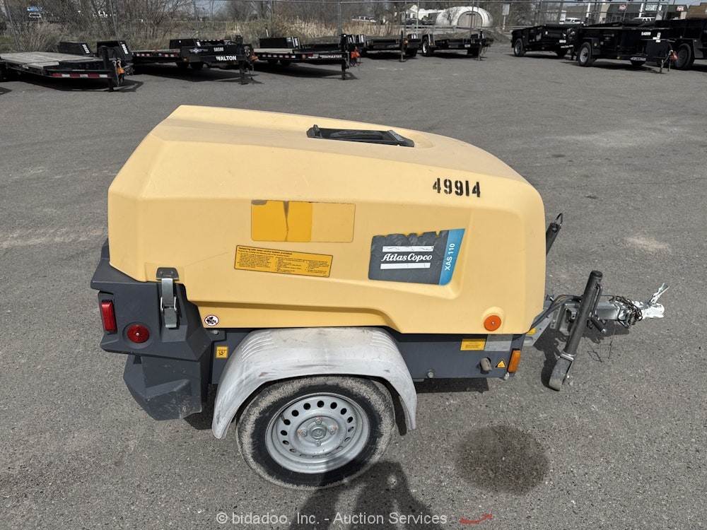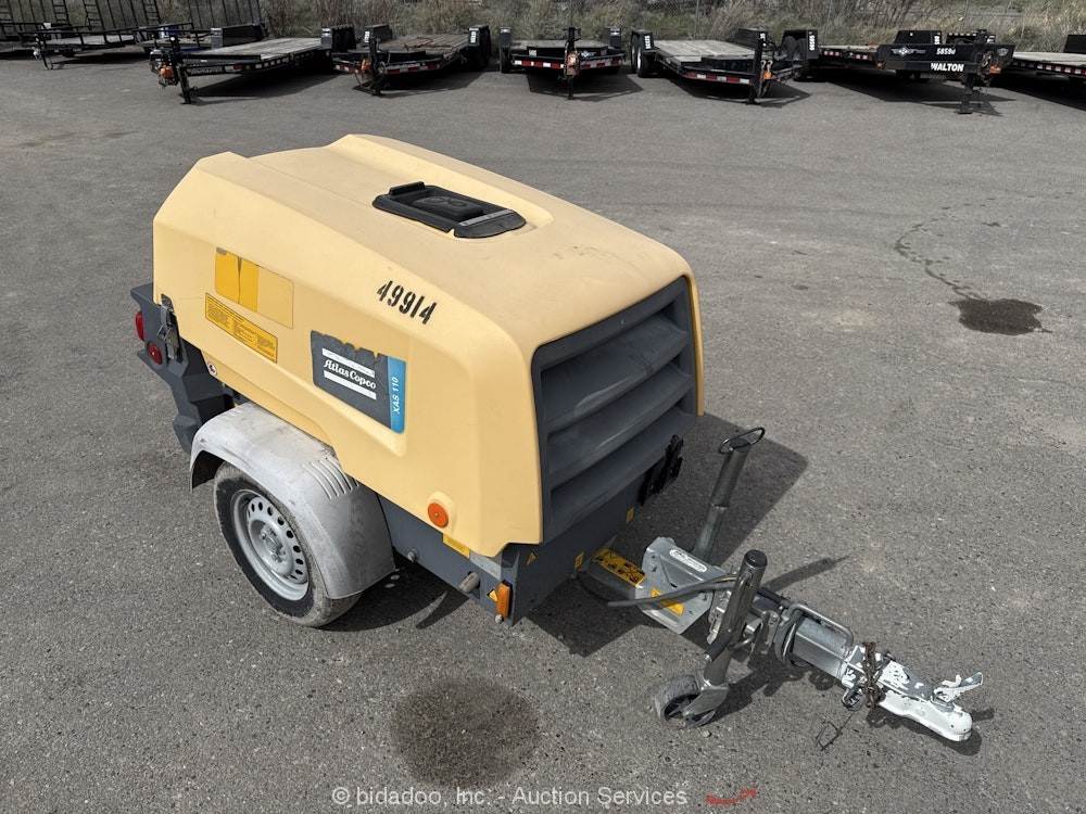 2018 Atlascopco XAS110 S/A 110 CFM Towable Air Compressor Kubota Diesel bidadoo