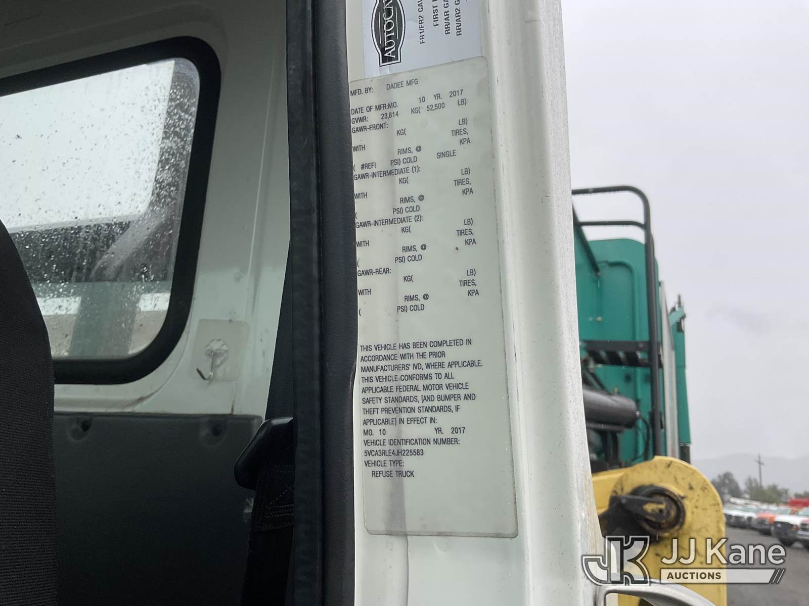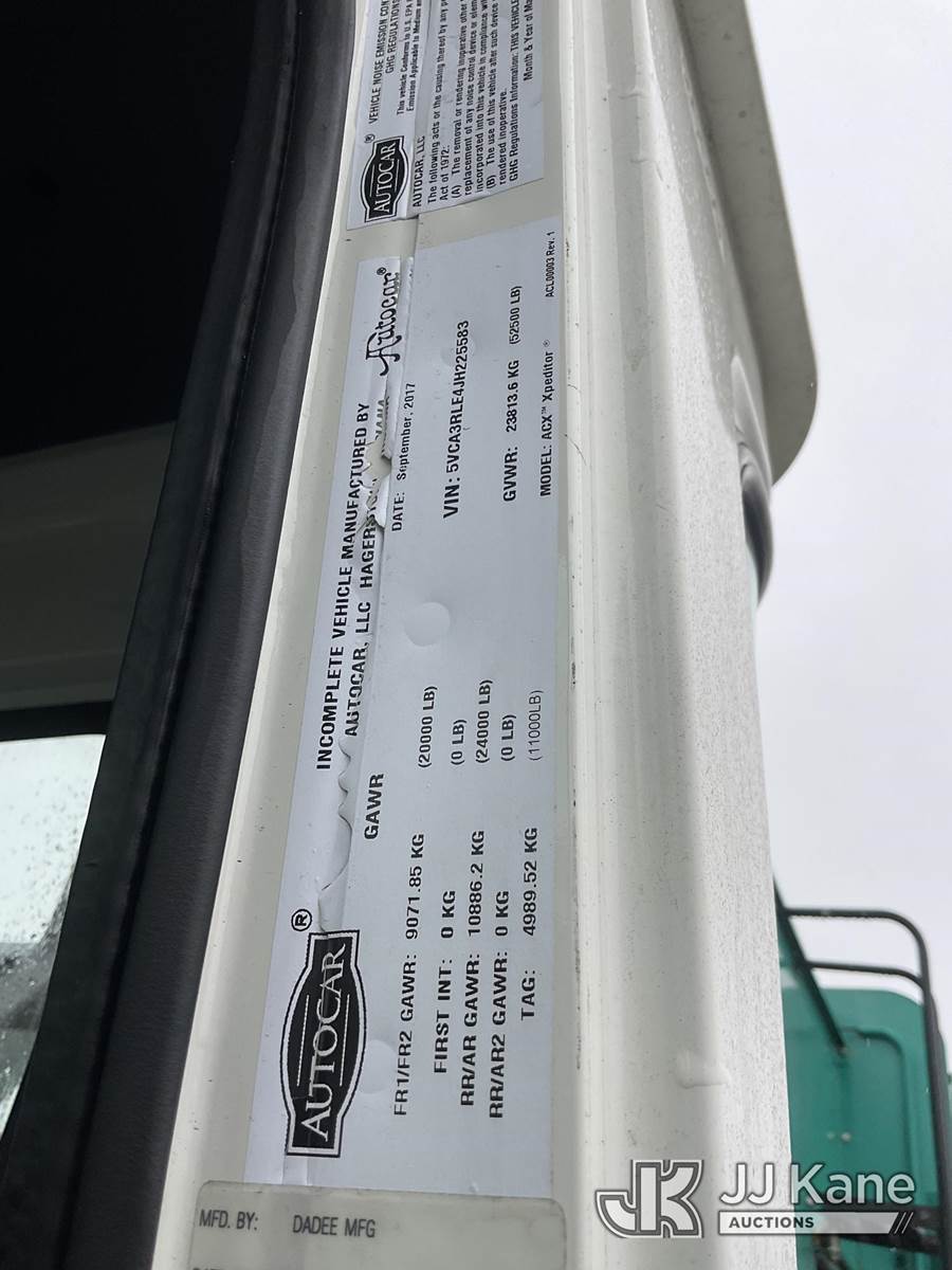 2018 Autocar Xpeditor T/A Trash Truck, s/n 5VCA3RLE4JH225583, 6-cyl, Auto, CNG Only, (44,415 miles) (Not Running, Condition Unknown) (Missing Head Lights, CNG Tank Expires In 2037) (Bidding Restricted to Licensed Vehicle Dealers Only), May be subject to ARB Regulations This is a Titled Item NOTE: This unit is being sold AS IS/WHERE IS via Timed Auction and is located in Jurupa Valley, CA. Inspection & preview days for this unit are the 2 business days prior to the first day of items closing for this auction, item is located at 4510 Muth Way Jurupa Valley, CA 92509 and hours of operations are 8a-4p. For pre-sale questions, please contact please contact Office Staff @ (310) 353-7140. Dealer License Number 45696. (Buyer is responsible for removal. Assistance by consignor or JJ Kane Auctions is not assured.)