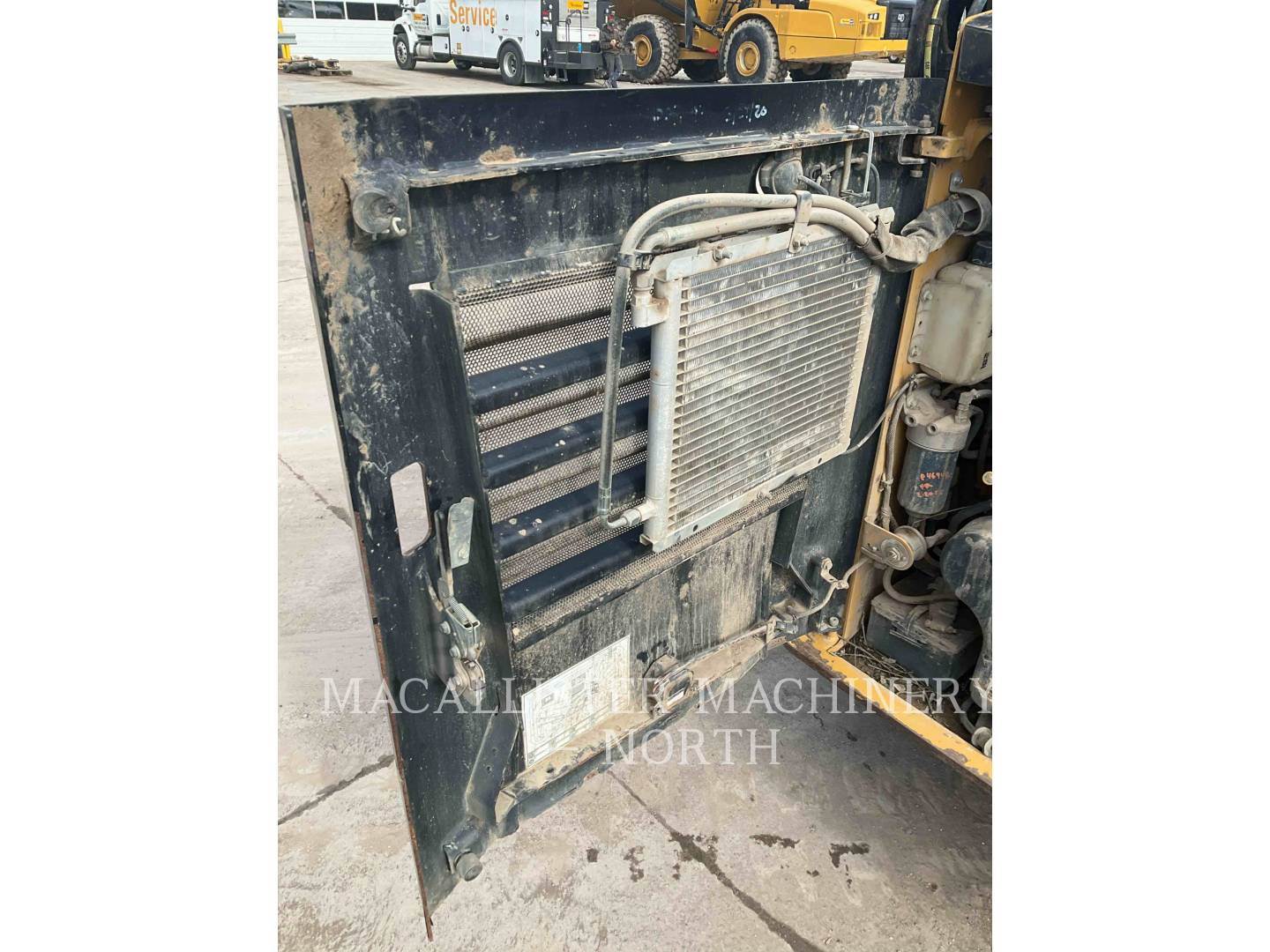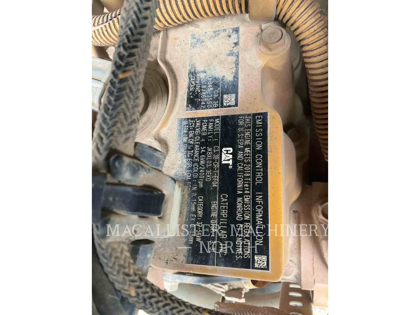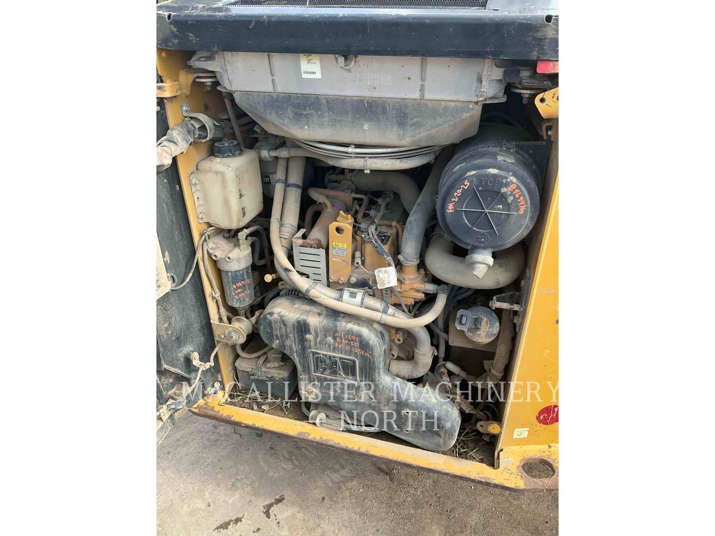 Powered by caterpillar C3.3B (4-cylinder turbo diesel) engine compartment full of mud