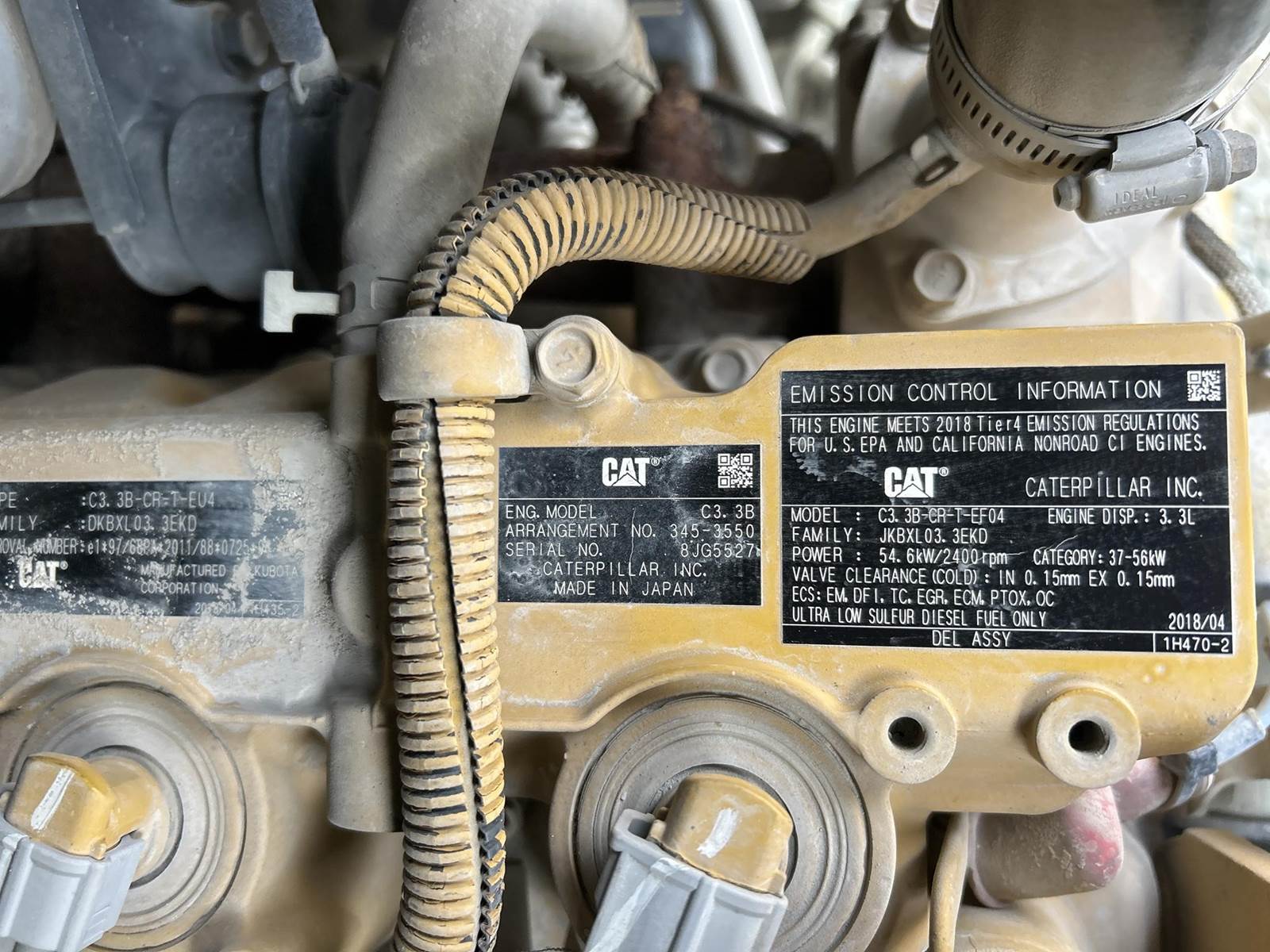 Caterpillar C3.3B Turbo Diesel Engine, 2 Speed Transmission, Approx. 79" Bucket, Auxillary Hydraulics, Hydraulic Quick Attach, EROPS, Joystick Controls, Heat, AC, Work Lights, 12-16.5 Tires