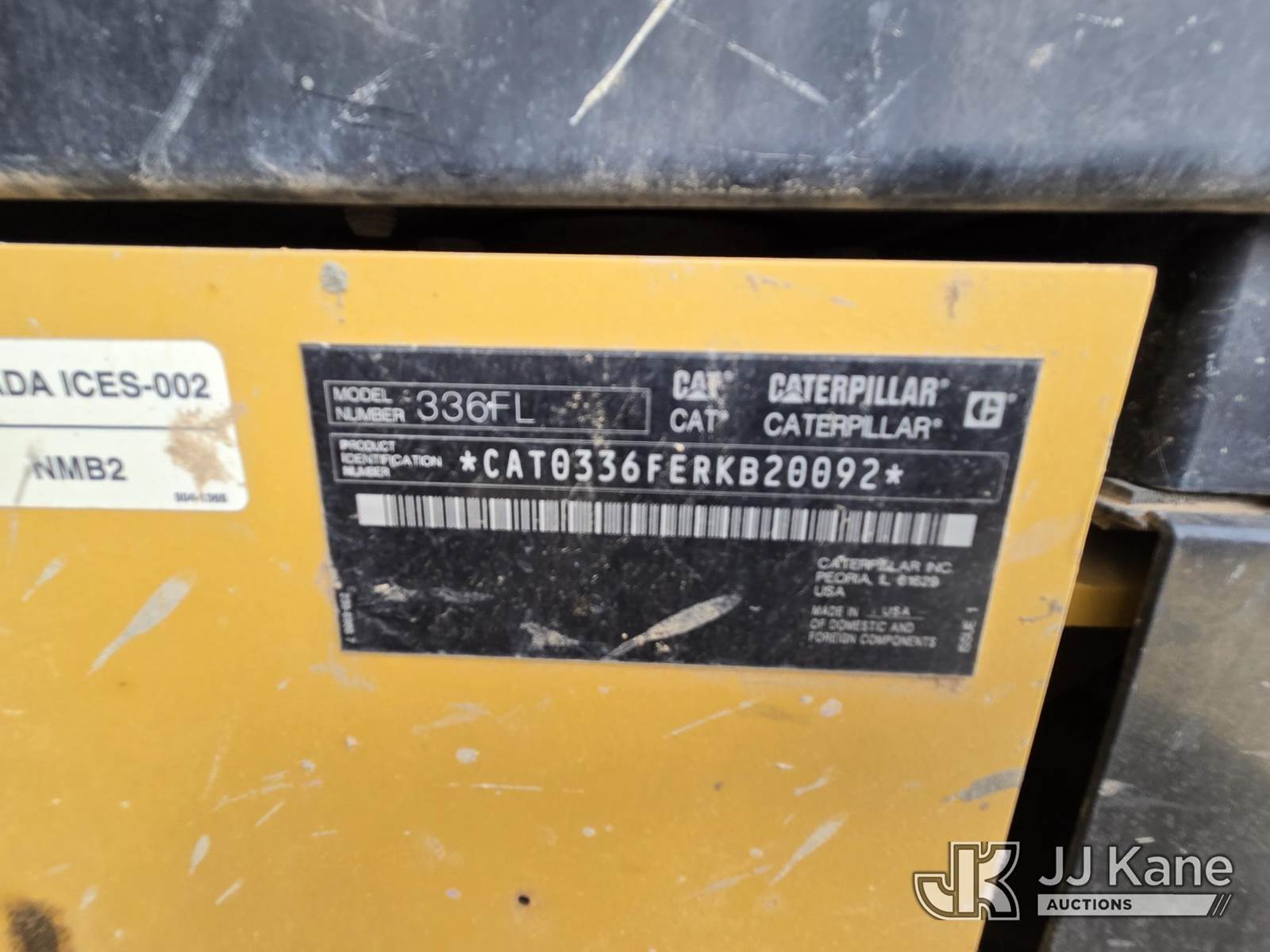 2018 Caterpillar 336FL Hydraulic Crawler Excavator, s/n CAT0336FERKB20092, Cat C9.3 diesel, Hydraulic Drive, with Straight Travel Pedal, Rear View Camera, 13 ft 1 in Stick, 33 in Triple Grouser Track Shoes, 60 in Digging Bucket, (Runs & Operates) (Reads 11,421 hours) NOTE: This unit is being sold AS IS/WHERE IS via Timed Auction and is located in Imperial, CA. Loadout hours Monday - Thursday 630am - 230pm (Buyer is responsible for removal. Assistance by consignor or JJ Kane Auctions is not assured.)