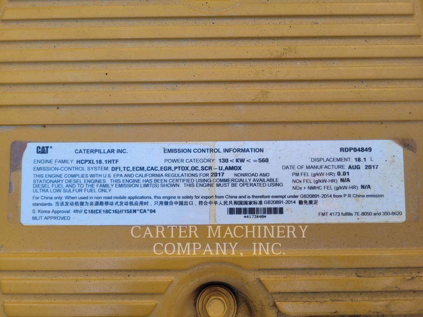 AID, COLD WEATHER STARTING, AM/FM RADIO (BLUETOOTH READY), ANTIFREEZE, -36C (-33F), BODY, STANDARD, CERT EMISSIONS, EPA TIER 4, CHASSIS,...