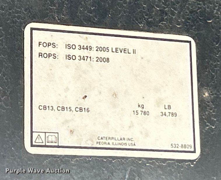2018 Caterpillar CB15 double drum vibratory roller, Hours: 3,453 on meter, Serial: CAT0CB15HM9400101, Engine, Caterpillar C4.4,...