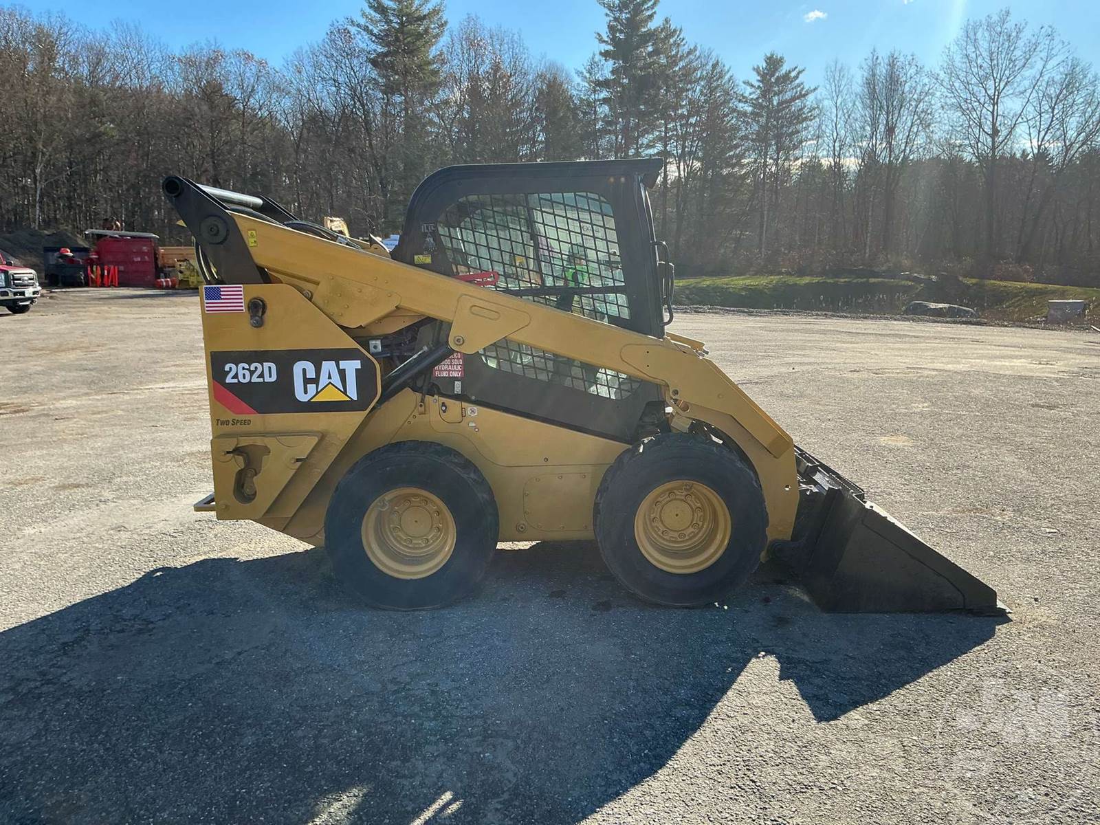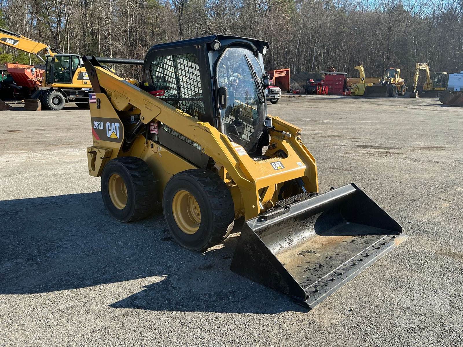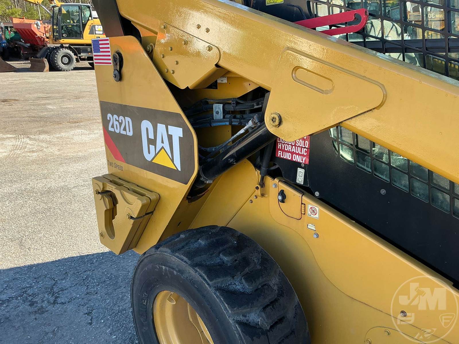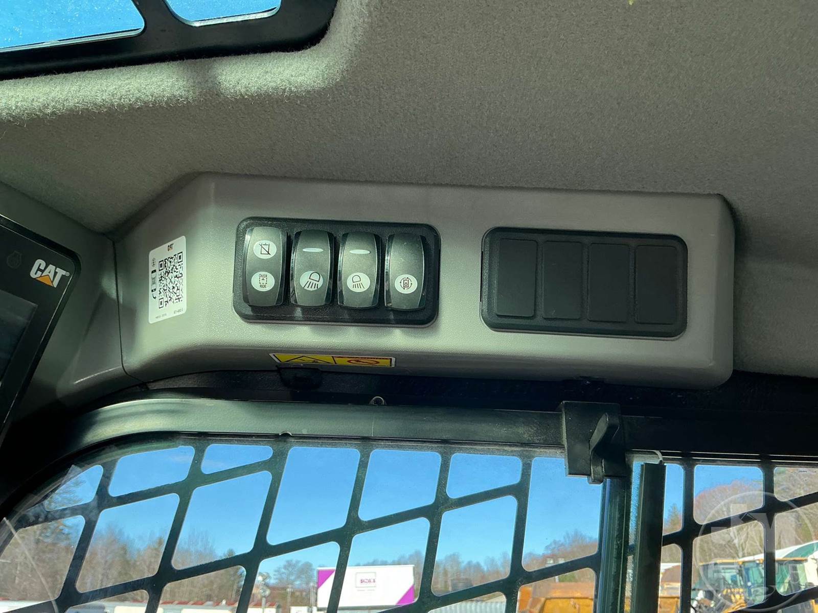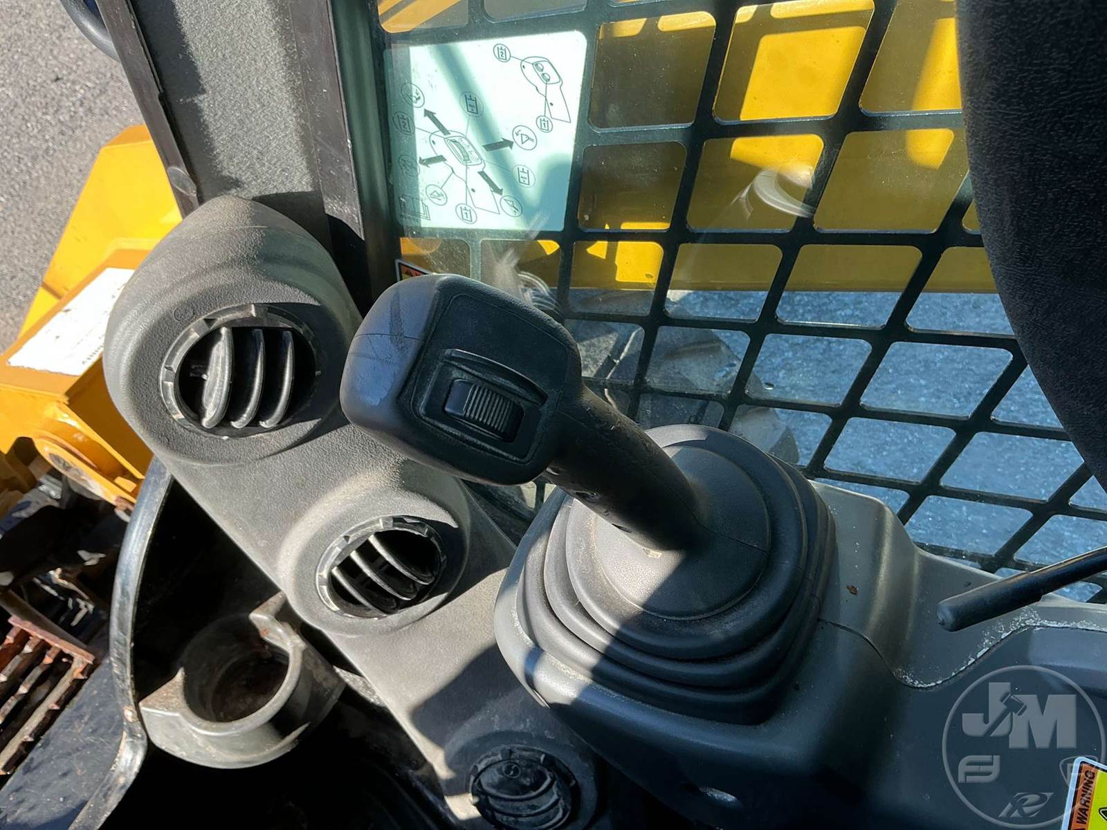 CATERPILLAR SKID STEER LOADER, CAB, AC, RADIO, REAR VIEW CAMERA, CATERPILLAR ENGINE, HYDRAULIC COUPLER, AUX HYDRAULICS, VERTICAL LIFT, 2 SPEED, HAND CONTROLS, 72", 12-16.5 TIRES