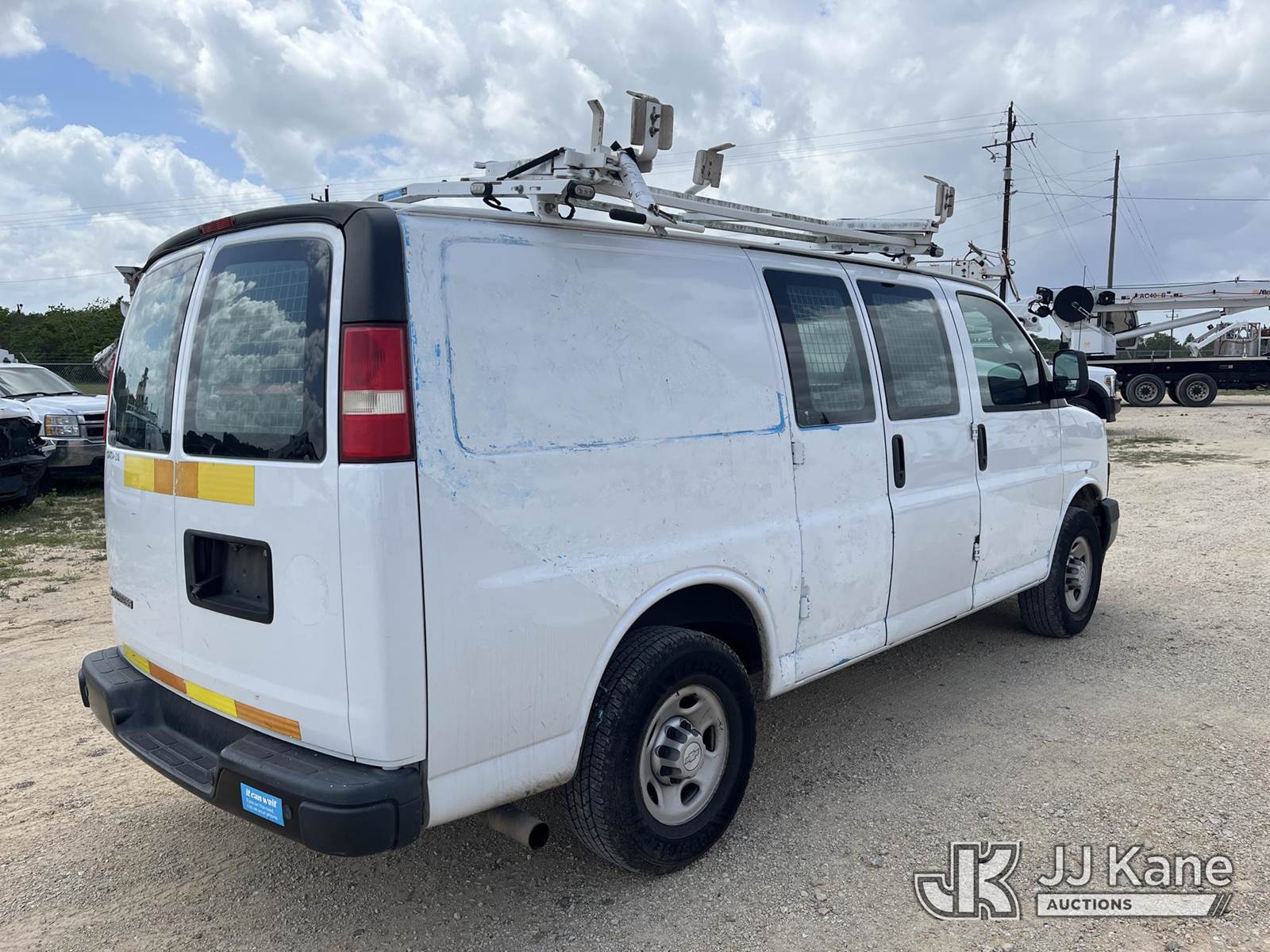 2018 Chevrolet Express G2500 Cargo Van, 6-cyl gas, RWD, Auto, A/C, with ladder rack, (86,701 miles) ((Runs & Moves) (Interior Defects, Torn Seat) (Exterior Defects ,Low Tire Pressure)) (Reads 5,463 hours) This is a Titled Item NOTE: This unit is being sold AS IS/WHERE IS via Timed Auction and is located in Houston, TX. Inspection & preview days for this unit are by appointment only; please contact us at contact@jjkane.com or 84-Go-JJKane for more details. For pre-sale questions, please contact Lowy Ghebre @ (281) 841-0069. (Buyer is responsible for removal. Assistance by consignor or JJ Kane Auctions is not assured.)