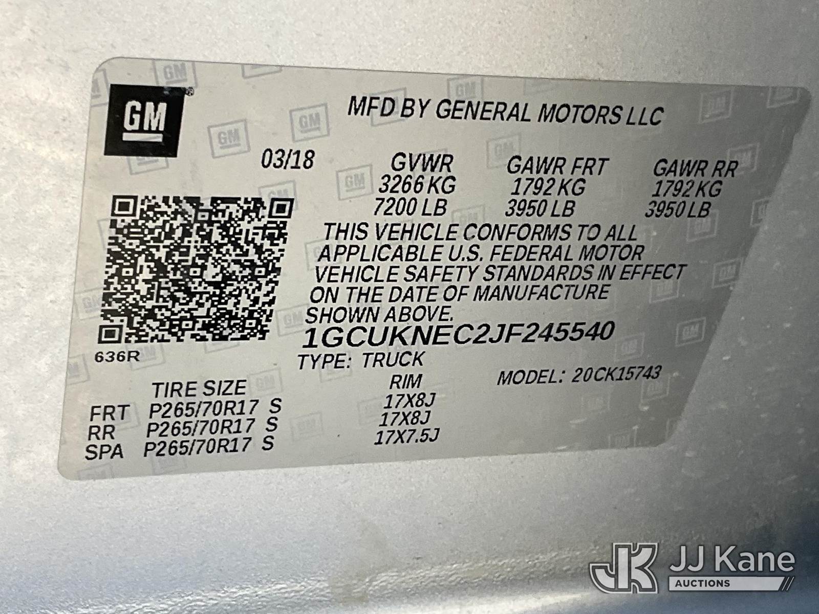 2018 Chevrolet Silverado 1500 4x4 Crew-Cab Pickup Truck, 8-cyl gas, Auto, A/C, (156,576 miles) (Runs & Moves) This is a Titled Item NOTE: This unit is being sold AS IS/WHERE IS via Timed Auction and is located in Salt Lake City, UT. Inspection & preview days for this unit are the 2 business days prior to the first day of items closing for this auction, item is located at 2353 N Redwood Rd Salt Lake City, UT 84116 and hours of operations are 8a-4p. Titles executed exactly as bidder registered. Ensure your name and/or business name and address in JJ Kane and/or ProxiBid is correct before bidding. For pre-sale questions, please contact Office Staff @ (801) 519-0123. (Buyer is responsible for removal. Assistance by consignor or JJ Kane Auctions is not assured.)