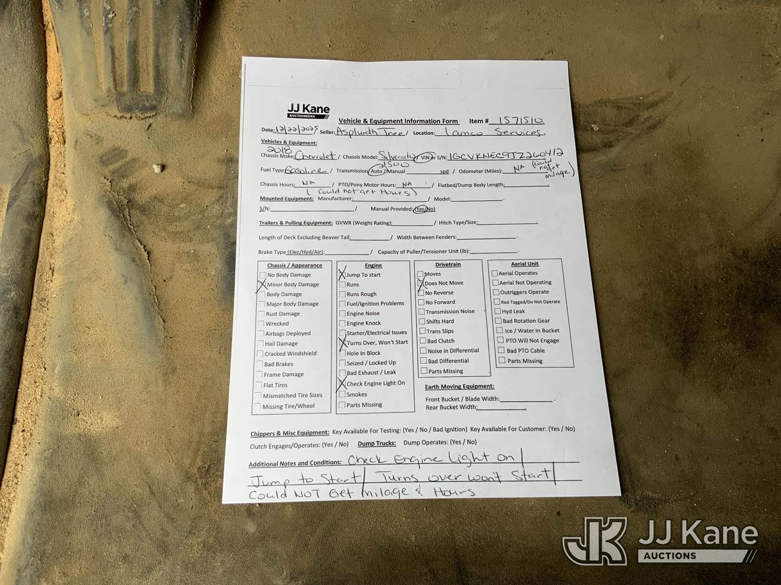2018 Chevrolet Silverado 1500 4x4 Extended-Cab Pickup Truck, 5.3L V8 OHV 16V gas, 6-Speed Automatic, A/C, True Mileage Unknown (Not Running, Condition Unknown) (Turns Over But Won't Start, Body Damage) This is a Titled Item NOTE: This unit is being sold AS IS/WHERE IS via Timed Auction and is located in Graysville, AL. Inspection & preview days for this unit are by appointment only; please contact us at contact@jjkane.com or 84-Go-JJKane for more details. Alabama Auctioneer Michael Whitebread - License # 5592 (Buyer is responsible for removal. Assistance by consignor or JJ Kane Auctions is not assured.)