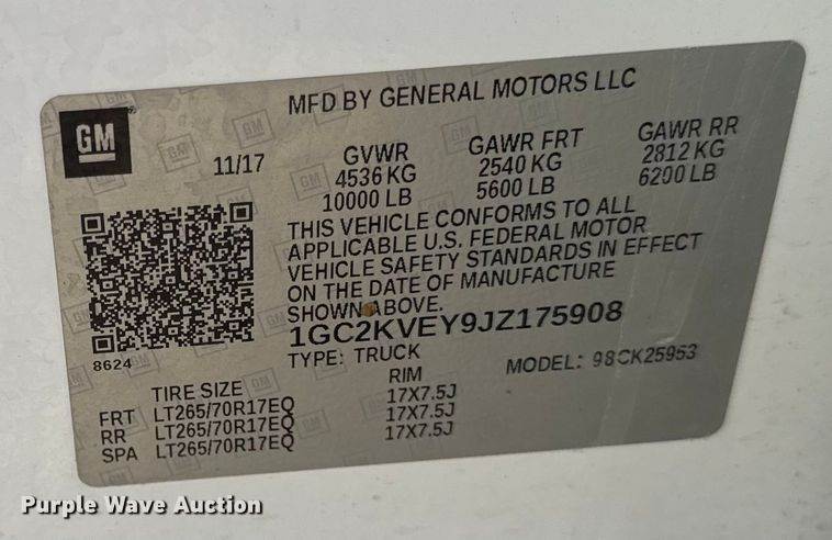 VIN: 1GC2KVEY9JZ175908