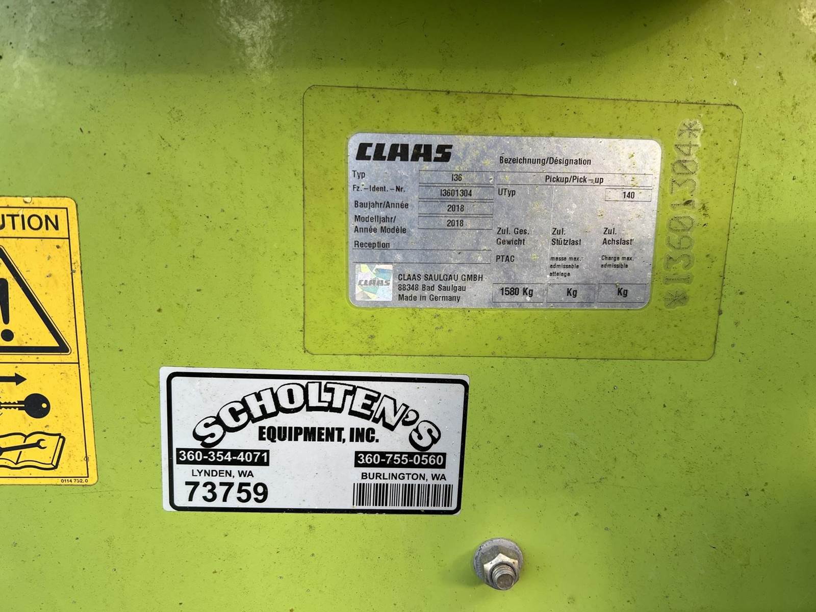 2018 CLAAS PU380 PRO Hay Pickup - late model, 13’, Black Bottom "I36". Head is for parts.