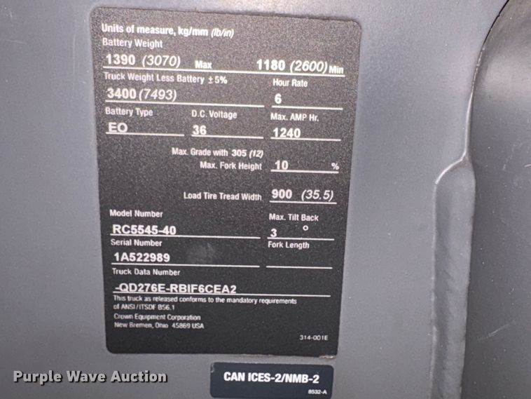 2018 Crown RC5545-40 order picker