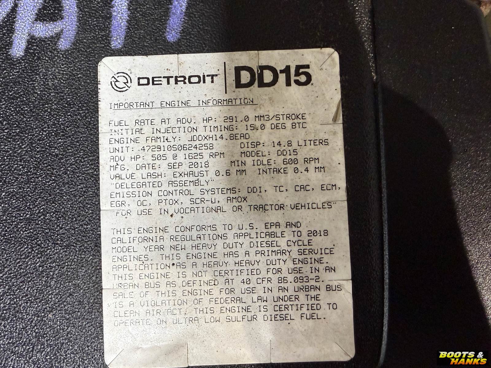 USED 2018 DETROIT DD15 DIESEL ENGINE FOR SALE