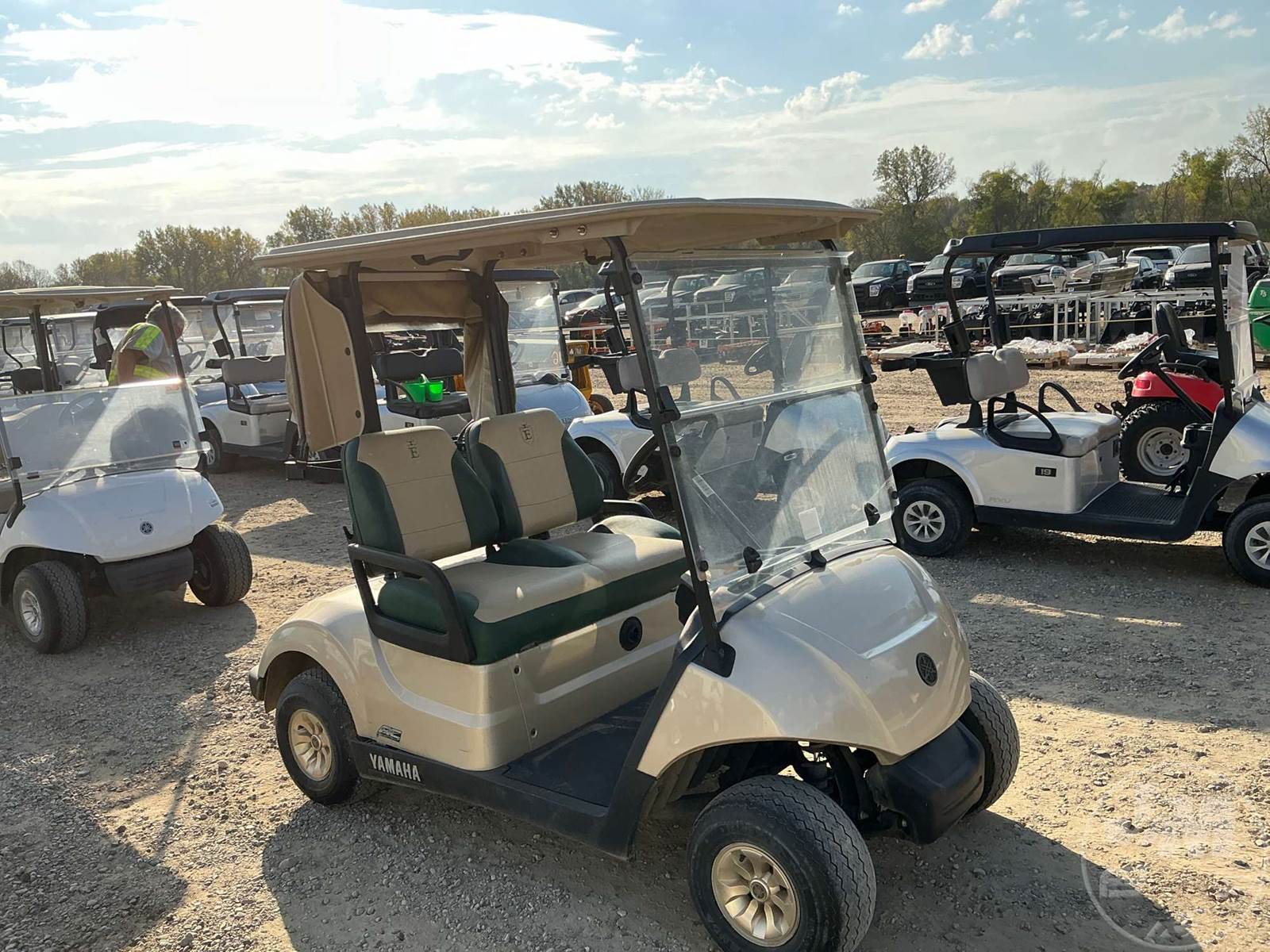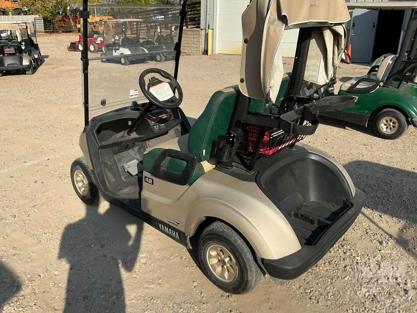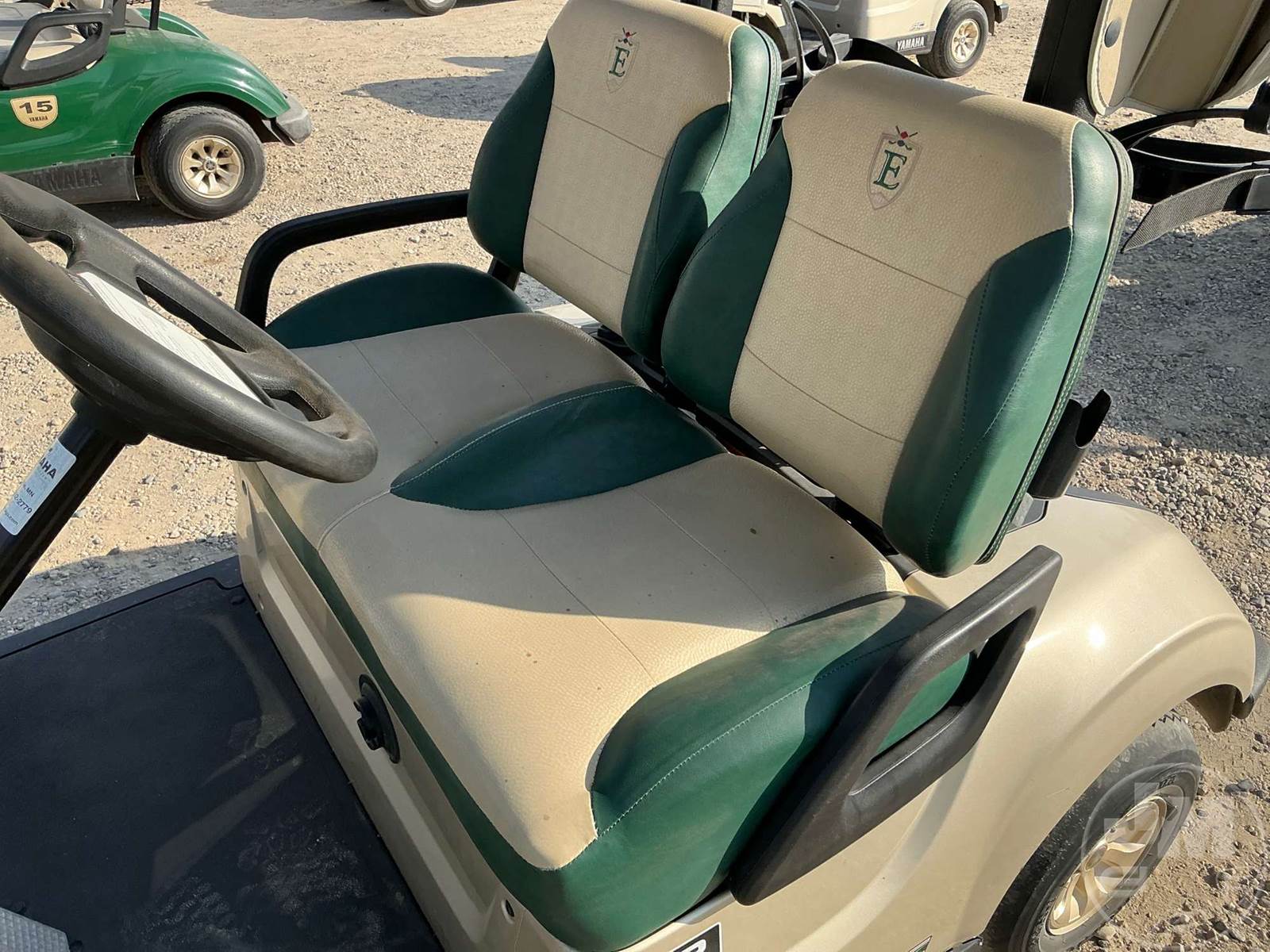 YAMAHA GOLF CART, ELECTRIC, TAN, 2 SEAT, CANOPY, RAIN CURTAIN, WINDSHIELD, PLUG IN CHARGER