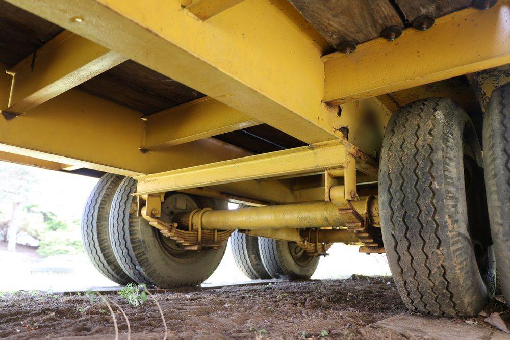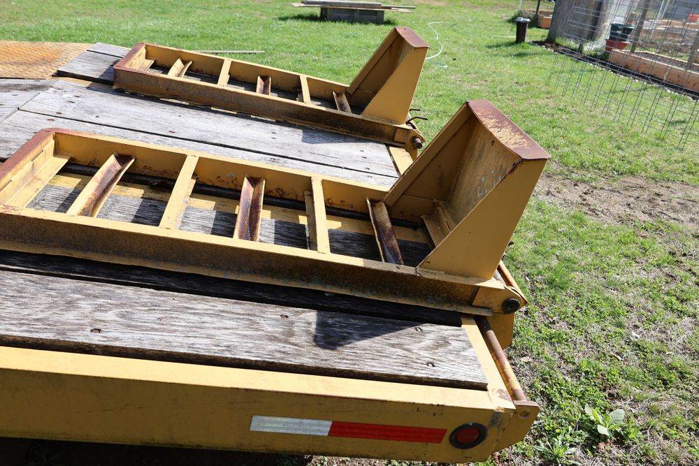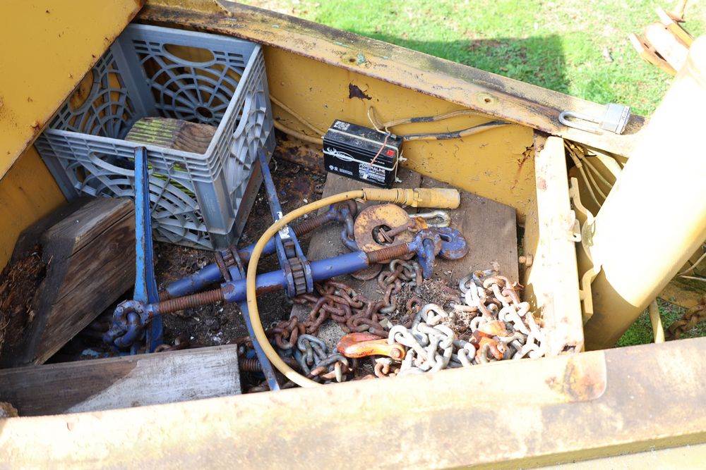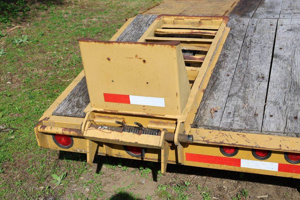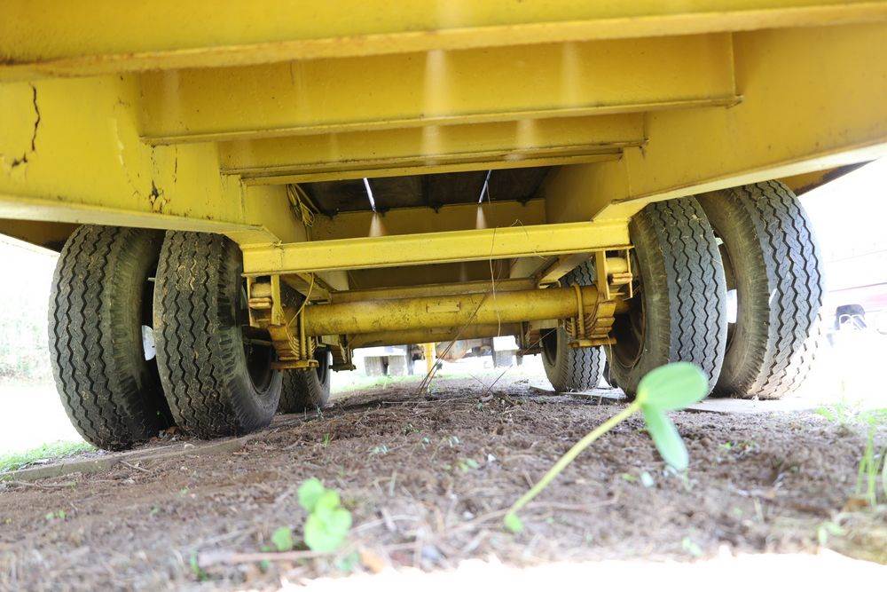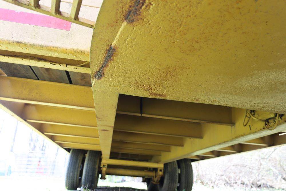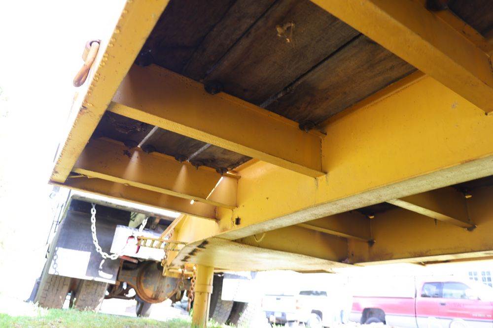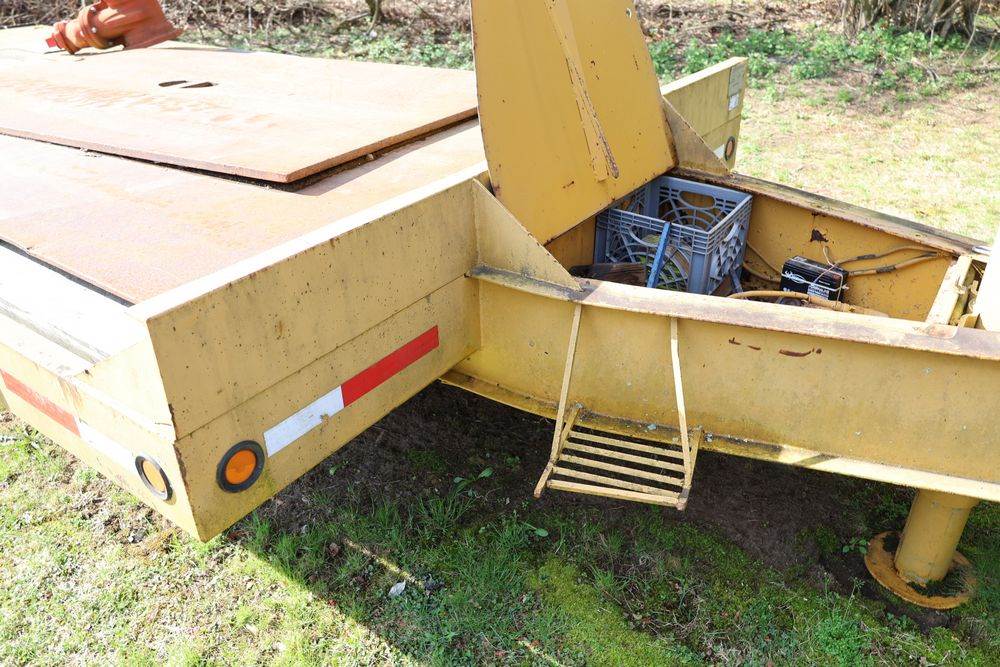 2018 Eager Beaver TL3 9 Ton equipment trailer; VIN 112HDB204JT090160; tandem axle dual wheel setup; wood deck; rear loading ramps; pintle hitch with jack stand; tie down points along sides; includes chains, binders, crate, and contents in front compartment. Excludes all items on the trailer. Title available.