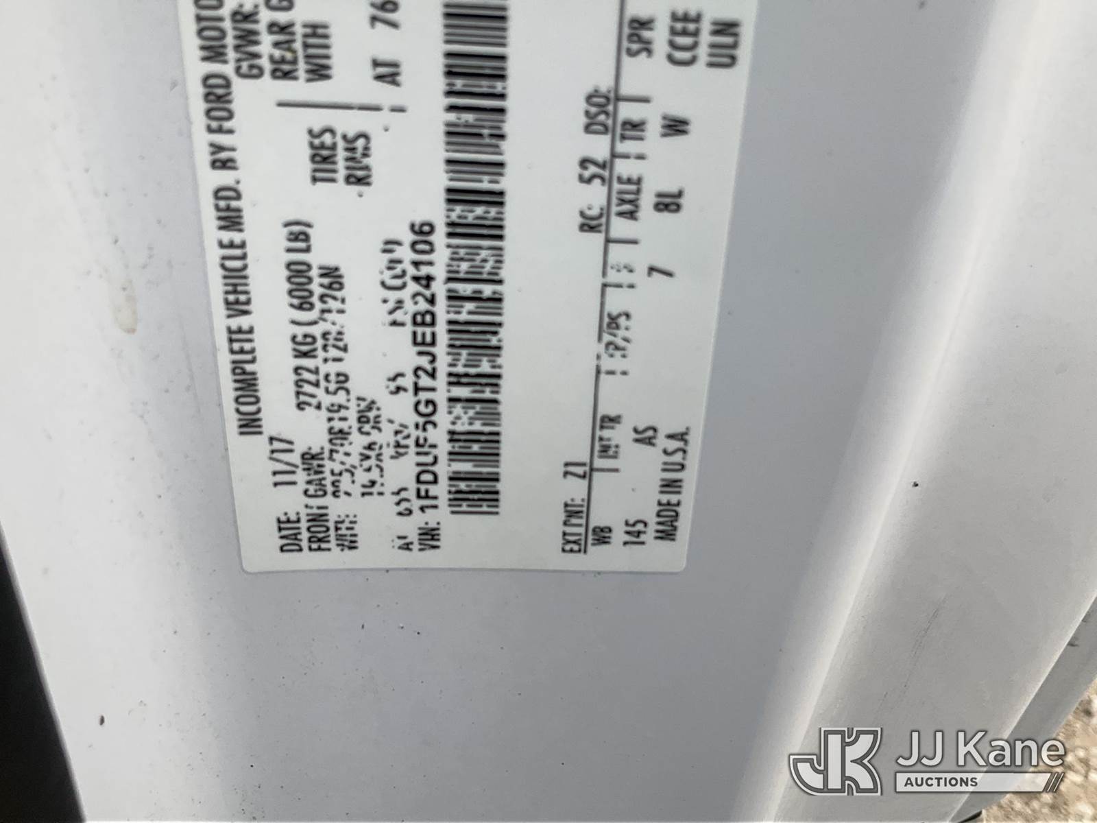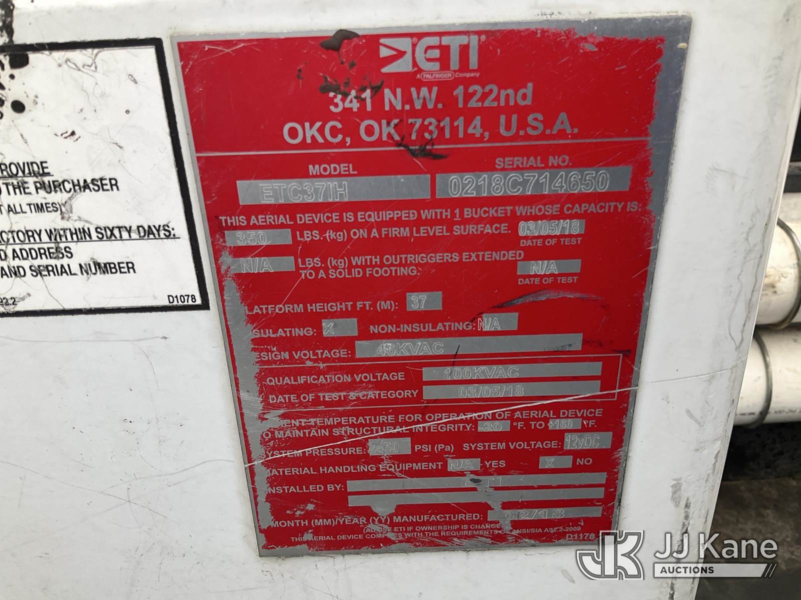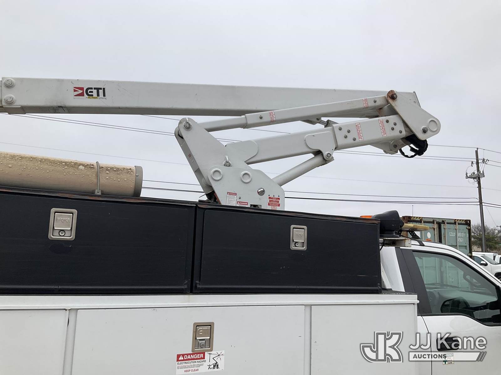 ETI ETC37-IH, 42 ft, Articulating & Telescopic Bucket Truck s/n 0218C714650, with single man bucket, mounted behind cab on 2018 Ford F550 Service Truck, 6.7L diesel, Auto, A/C, (218,961 miles) (Runs, Moves & Upper Operates) (Check Engine Light On) This is a Titled Item NOTE: This unit is being sold AS IS/WHERE IS via Timed Auction and is located in Waxahachie, TX. Inspection & preview days for this unit are the 2 business days prior to the first day of items closing for this auction, item is located at 999 Solon Rd Waxahachie, TX 75165 and hours of operations are 8a-4p. For pre-sale questions, please contact Alex Bayless @ (469) 550-4938. (Missing manuals, See Auction Company for Manufacturers Information to obtain manuals) (Buyer is responsible for removal. Assistance by consignor or JJ Kane Auctions is not assured.)