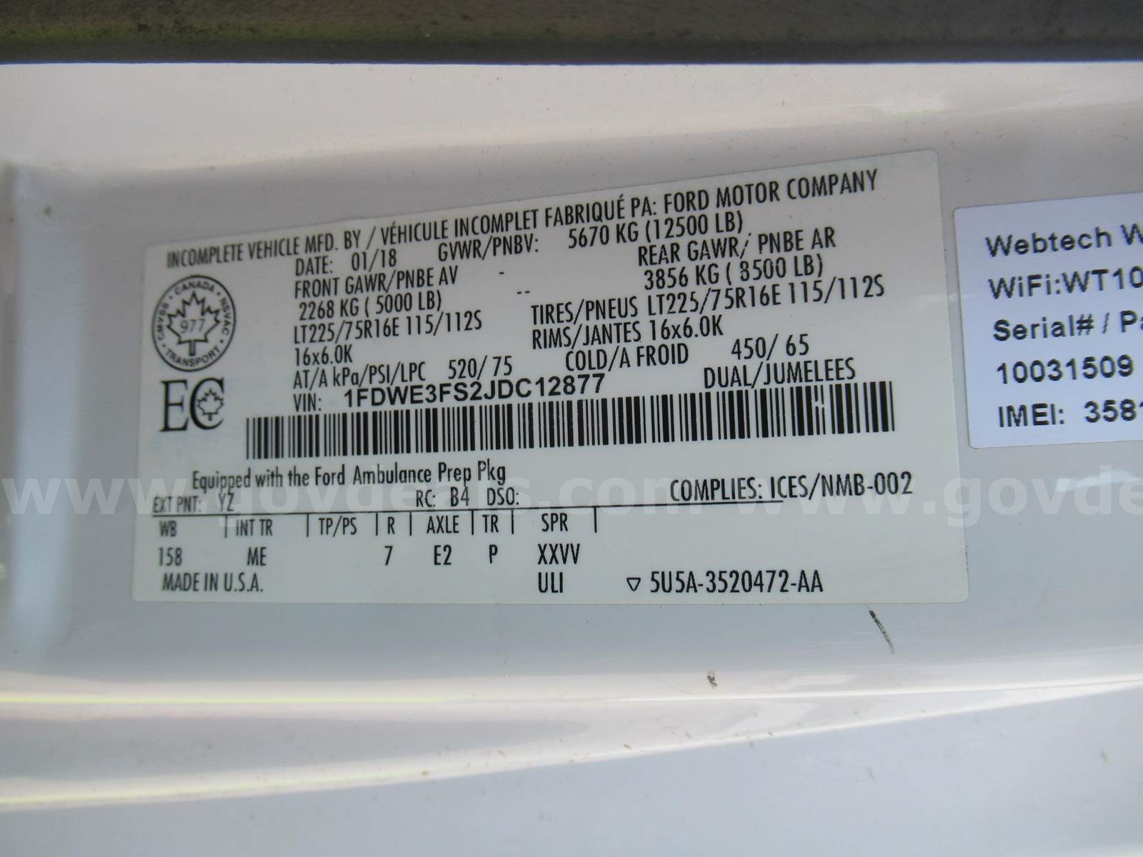 2018 Ford Econoline CUTAWAY, 6.8L V10 SOHC 20V. Started and ran when removed from service in 2025. Gas fuel type. Automatic transmission. 2WD. No recent repairs. No known operational issues. **GovDeals.com is the online auction platform where you can bid on and buy government surplus**