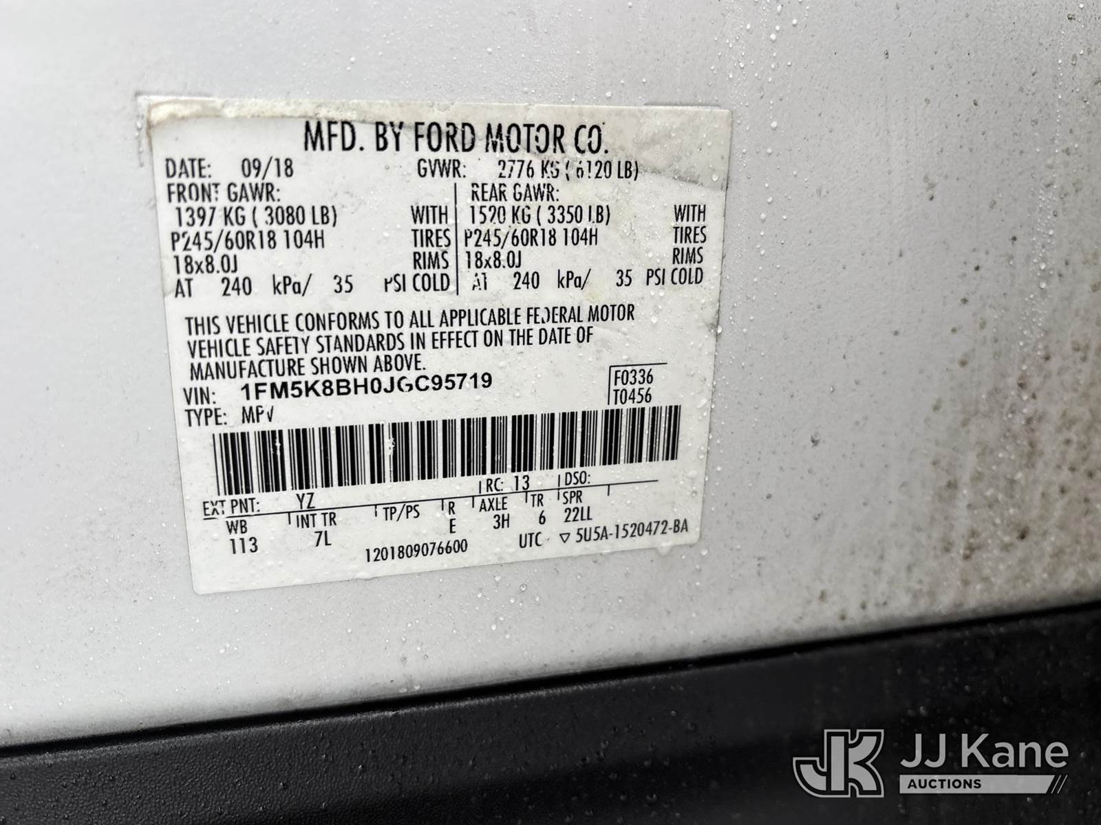 2018 Ford Explorer 4-Door Sport Utility Vehicle, 4-cyl gas, 4WD, 6-Speed Automatic, A/C, (129,230 miles) Danella unit (Runs & Moves) (Transmission Problems/Issues) This is a Titled Item NOTE: This unit is being sold AS IS/WHERE IS via Timed Auction and is located in Bath, NY. For more information & removal arrangements please contact John Kane @ 609-722-1265 (Buyer is responsible for removal. Assistance by consignor or JJ Kane Auctions is not assured.)