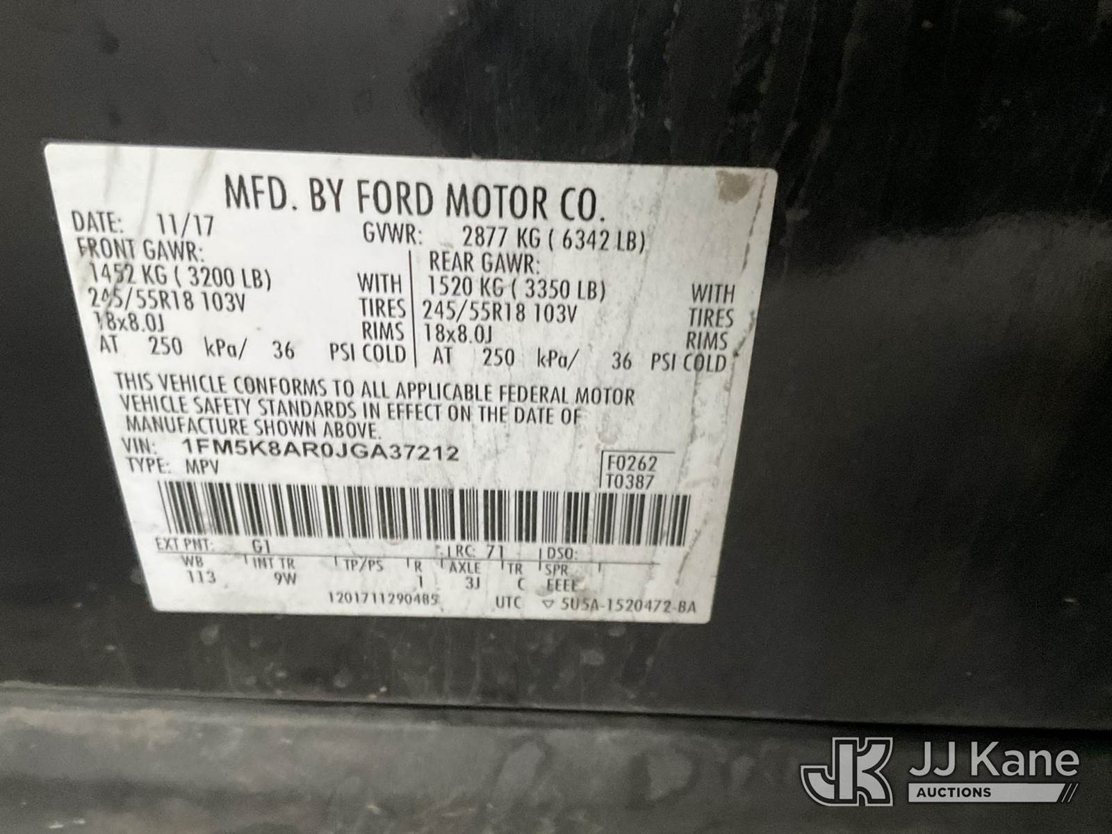 2018 Ford Explorer AWD Police Interceptor 4-Door Sport Utility Vehicle, s/n 1FM5K8AR0JGA37212, 6-cyl, gas, Auto, A/C, with spotlight, (133,720 miles) (Runs & Moves) (Interior Stripped Of Parts, Body Damage, Open Recall, Remedy Not Yet Available) (Bidding Restricted to Licensed Vehicle Dealers Only), This is a Titled Item NOTE: This unit is being sold AS IS/WHERE IS via Timed Auction and is located in Jurupa Valley, CA. Inspection & preview days for this unit are the 2 business days prior to the first day of items closing for this auction, item is located at 4510 Muth Way Jurupa Valley, CA 92509 and hours of operations are 8a-4p. For pre-sale questions, please contact please contact Office Staff @ (310) 353-7140. Dealer License Number 45696. (Buyer is responsible for removal. Assistance by consignor or JJ Kane Auctions is not assured.)