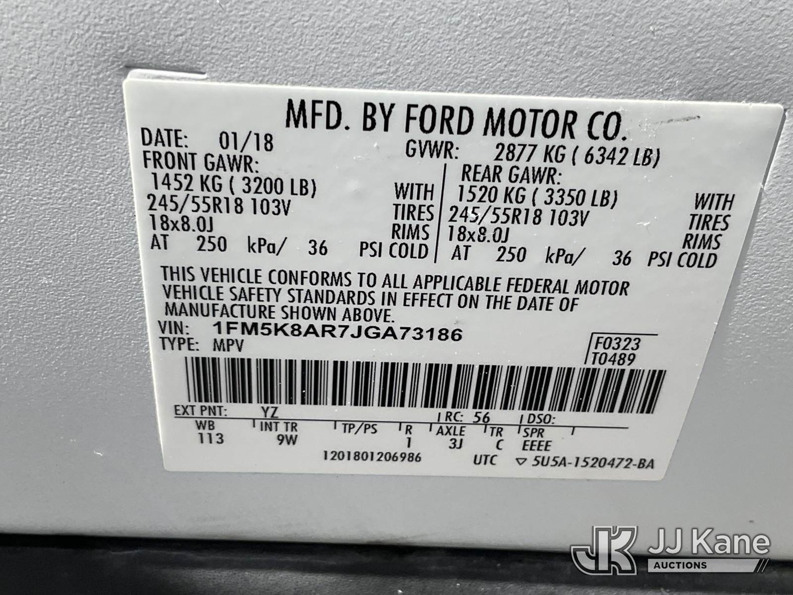 2018 Ford Explorer AWD Police Interceptor 4-Door Sport Utility Vehicle, 3.7L V6 DOHC 24V gas, 6-Speed Automatic, A/C, (104,210 miles) (Runs & Moves) (Airbag Light On ) This is a Titled Item NOTE: This unit is being sold AS IS/WHERE IS via Timed Auction and is located in Salt Lake City, UT. Inspection & preview days for this unit are the 2 business days prior to the first day of items closing for this auction, item is located at 2353 N Redwood Rd Salt Lake City, UT 84116 and hours of operations are 8a-4p. Titles executed exactly as bidder registered. Ensure your name and/or business name and address in JJ Kane and/or ProxiBid is correct before bidding. For pre-sale questions, please contact Office Staff @ (801) 519-0123. (Buyer is responsible for removal. Assistance by consignor or JJ Kane Auctions is not assured.)