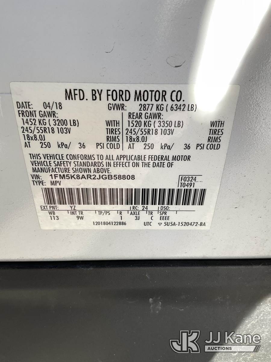 2018 Ford Explorer Police 4WD 4-Door Sport Utility Vehicle, 3.7L V6 DOHC 24V Gas, Auto, A/C, (115,269 miles) (Runs & Moves) (Minor Body, Interior & Paint Issues) This is a Titled Item NOTE: This unit is being sold AS IS/WHERE IS via Timed Auction and is located in Ocala, FL. For more information & removal arrangements please contact Mike Lessard @ 352-629-6677. (Buyer is responsible for removal. Assistance by consignor or JJ Kane Auctions is not assured.)