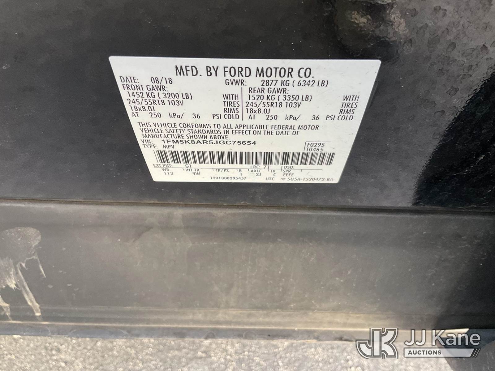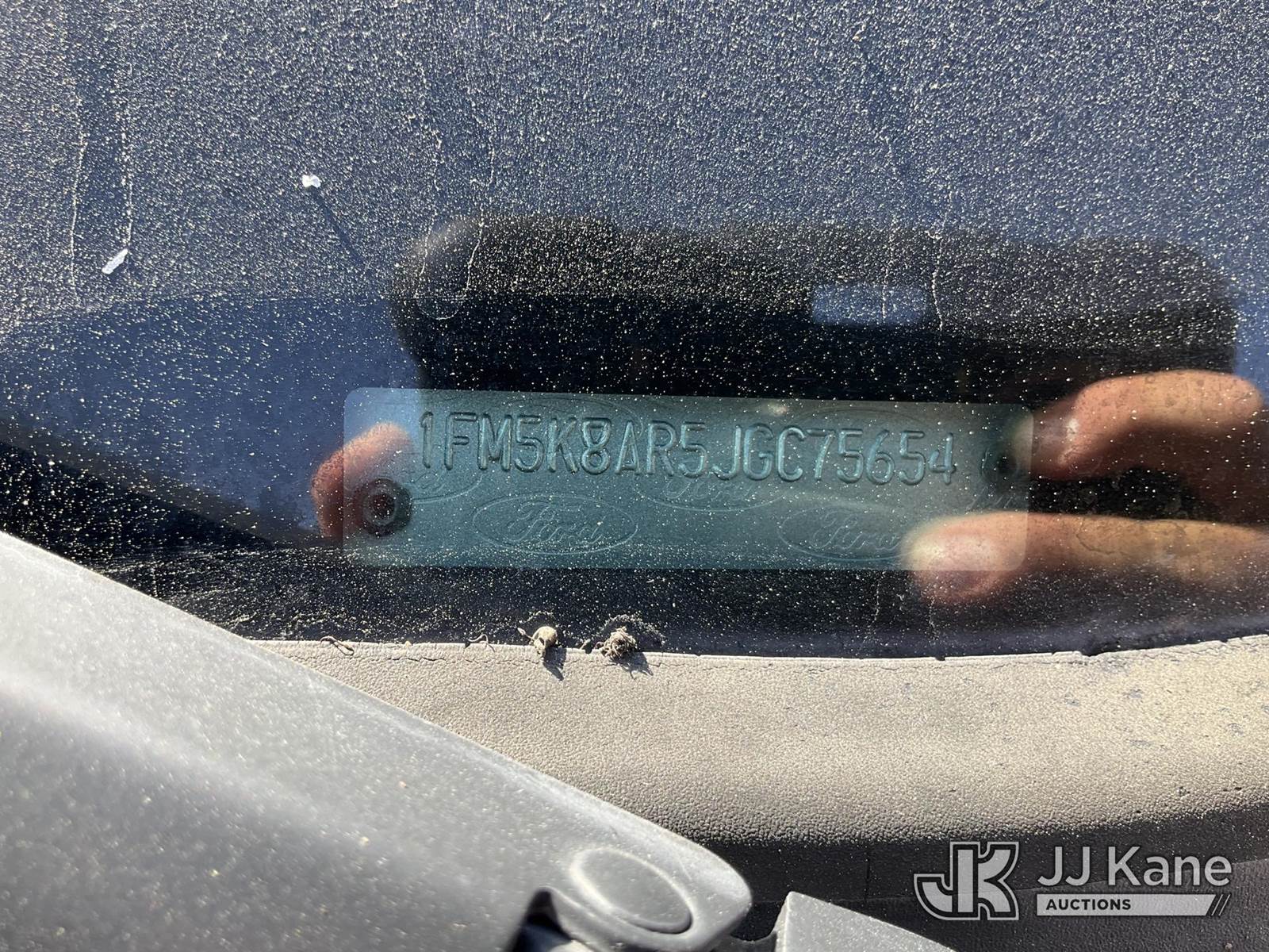 2018 Ford Explorer Police 4WD 4-Door Sport Utility Vehicle, s/n 1FM5K8AR5JGC75654, 3.7L V6 DOHC 24V GAS, 6-Speed Automatic, A/C, (102,243 miles) (Runs & Moves, Driver Outside Door Handle Broken Not Attached, Interior stripped Of Parts, Rear Doors Do Not Open, Open Recall, Remedy Not Yet Available, Vehicle is subject to an open NHTSA safety recall related to ON YOUR VEHICLE, THE REAR VIEW CAMERA COULD DISPLAY A BLANK OR DISTORTED IMAGE ON THE CENTER DISPLAY SCREEN WHEN THE VEHICLE IS IN REVERSE. YOU MAY ALSO RECEIVE A MESSAGE THAT THE REAR VIEW CAMERA IS UNAVAILABLE ON THE CENTER DISPLAY SCREEN., but a remedy for this recall does not appear to be available. Dealer is not authorized to perform the recall repair. Periodically contact the manufacturer or check the VIN on the NHTSA website at www.safercar.govivin to determine whether a remedy for the recall is available. As soon as a remedy is available, arrange to have the recall remedied with a dealer from that make of car to make such repair.) (Bidding Restricted to Licensed Vehicle Dealers Only), This is a Titled Item NOTE: This unit is being sold AS IS/WHERE IS via Timed Auction and is located in Jurupa Valley, CA. Inspection & preview days for this unit are the 2 business days prior to the first day of items closing for this auction, item is located at 4510 Muth Way Jurupa Valley, CA 92509 and hours of operations are 8a-4p. For pre-sale questions, please contact please contact Office Staff @ (310) 353-7140. Dealer License Number 45696. (Buyer is responsible for removal. Assistance by consignor or JJ Kane Auctions is not assured.)