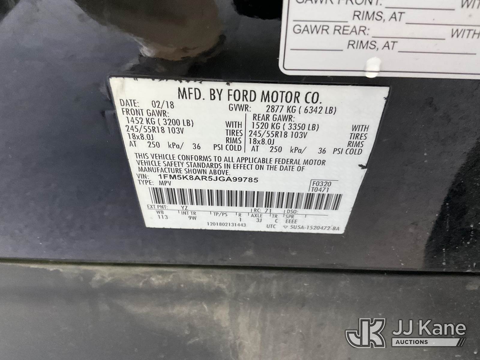 2018 Ford Explorer Police 4WD 4-Door Sport Utility Vehicle, s/n 1FM5K8AR5JGA99785, 3.7L V6 DOHC 24V GAS, 6-Speed Automatic, A/C, (96,579 miles) (Runs & Moves, Engine Light On, Interior Stripped Of Parts, Open Recall, Remedy Not Yet Available, Vehicle is subject to an open NHTSA safety recall related to IN SOME OF THE AFFECTED VEHICLES, IT MAY BE POSSIBLE THAT SOME OF THE EXTERIOR A-PILLAR APPLIQUE TRIM CLIP ATTACHMENTS ARE NOT PROPERLY ENGAGED DUE TO IMPROPER ASSEMBLY OR REPAIR. IF THIS OCCURS, THE A-PILLAR APPLIQUE TRIM, WHICH BORDERS THE RIGHT AND LEFT SIDE OF THE WINDSHIELD, MAY BE LOOSE, MISSING OR BECOME DETACHED., but a remedy for this recall does not appear to be available. Dealer is not authorized to perform the recall repair. Periodically contact the manufacturer or check the VIN on the NHTSA website at www.safercar.govivin to determine whether a remedy for the recall is available. As soon as a remedy is available, arrange to have the recall remedied with a dealer from that make of car to make such repair.) (Bidding Restricted to Licensed Vehicle Dealers Only), This is a Titled Item NOTE: This unit is being sold AS IS/WHERE IS via Timed Auction and is located in Jurupa Valley, CA. Inspection & preview days for this unit are the 2 business days prior to the first day of items closing for this auction, item is located at 4510 Muth Way Jurupa Valley, CA 92509 and hours of operations are 8a-4p. For pre-sale questions, please contact please contact Office Staff @ (310) 353-7140. Dealer License Number 45696. (Buyer is responsible for removal. Assistance by consignor or JJ Kane Auctions is not assured.)