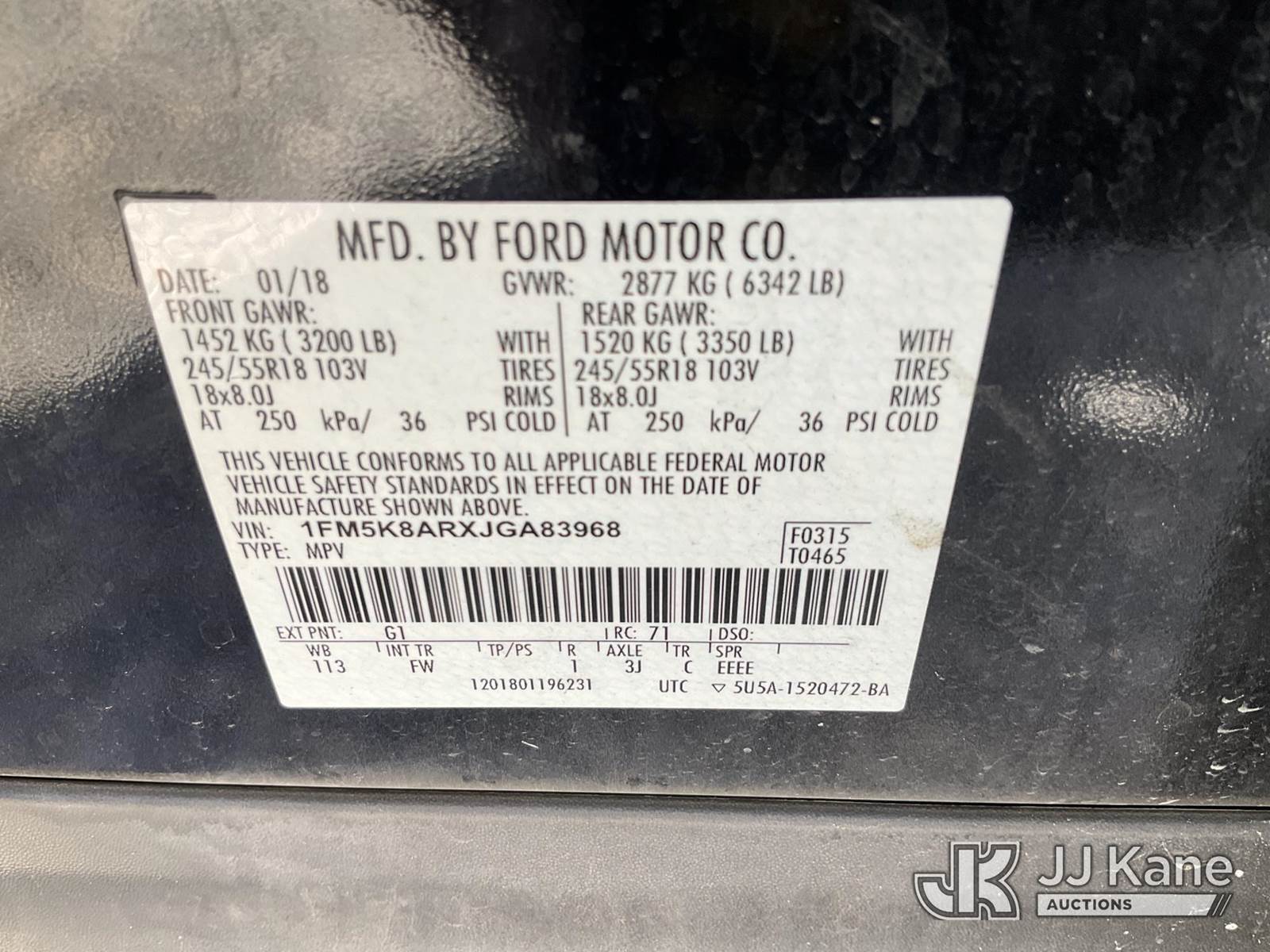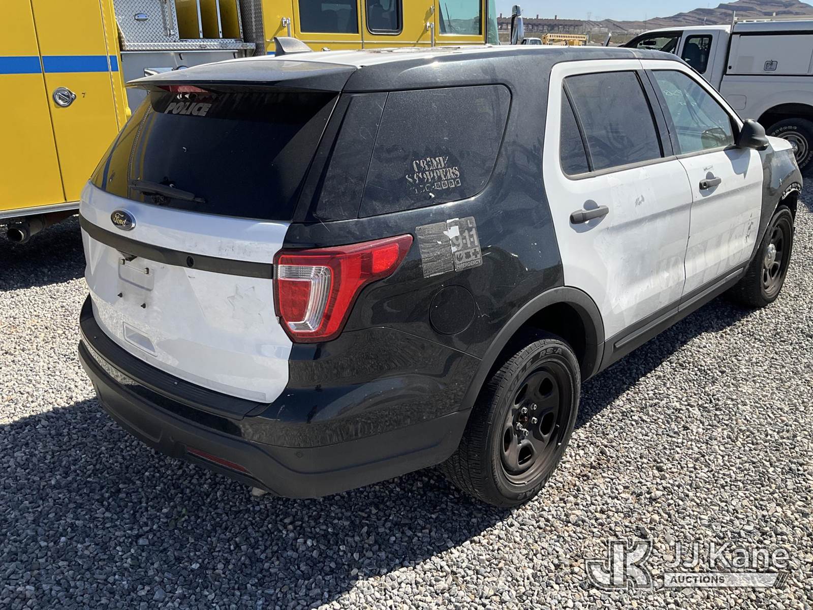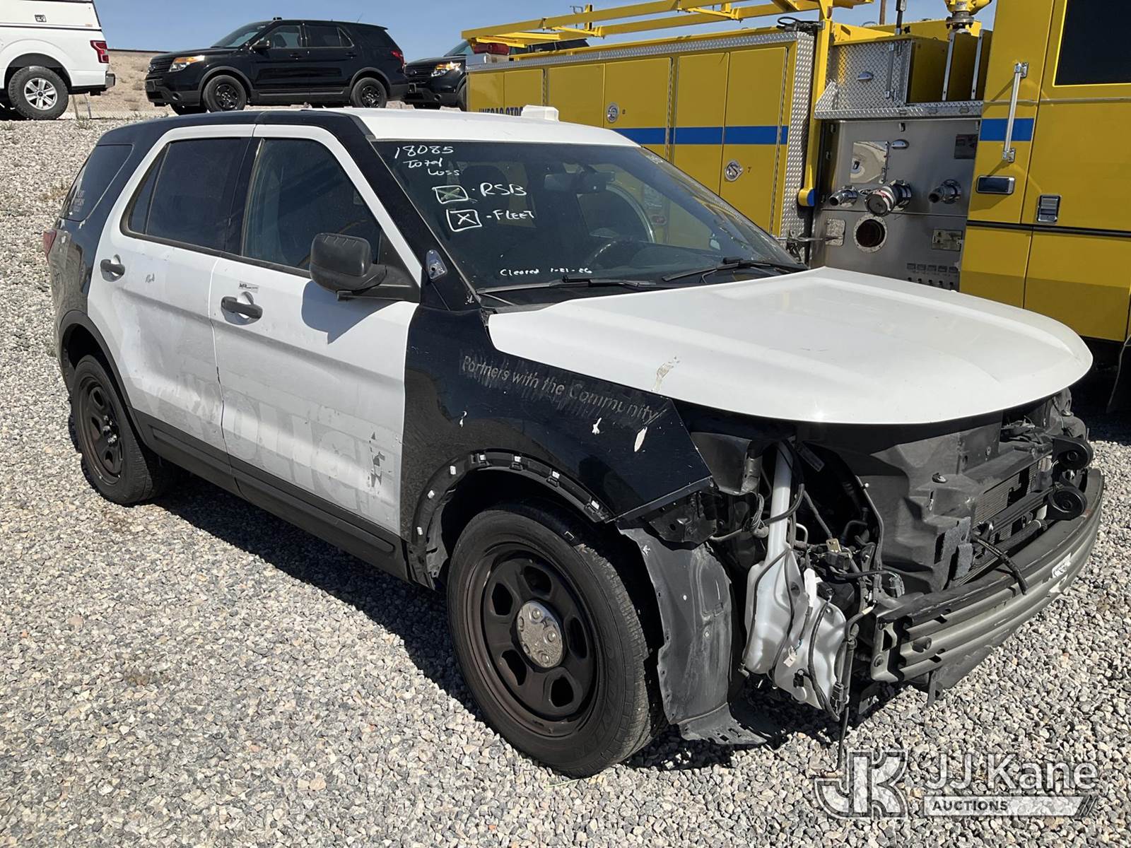 2018 Ford Explorer Police 4WD 4-Door Sport Utility Vehicle, 6-cyl gas, Auto, A/C, (56,977 miles) (Wrecked) (Runs & Moves) (Jump To Start, Check Engine Light On) This is a Titled Item NOTE: This unit is being sold AS IS/WHERE IS via Timed Auction and is located in Las Vegas, NV. Inspection & preview days for this unit are the 2 business days prior to the first day of items closing for this auction, item is located at 14655 Grand Valley Pkwy Las Vegas, NV 89165 and hours of operations are 8a-4p. Titles executed exactly as bidder registered. Ensure your name and/or business name and address in JJ Kane and/or ProxiBid is correct before bidding. For pre-sale questions, please contact Office Staff @ (801) 519-0123 and provide sale date and lot number. Las Vegas Dealer License Number DLR000053086 / OHV000053094. (Buyer is responsible for removal. Assistance by consignor or JJ Kane Auctions is not assured.)