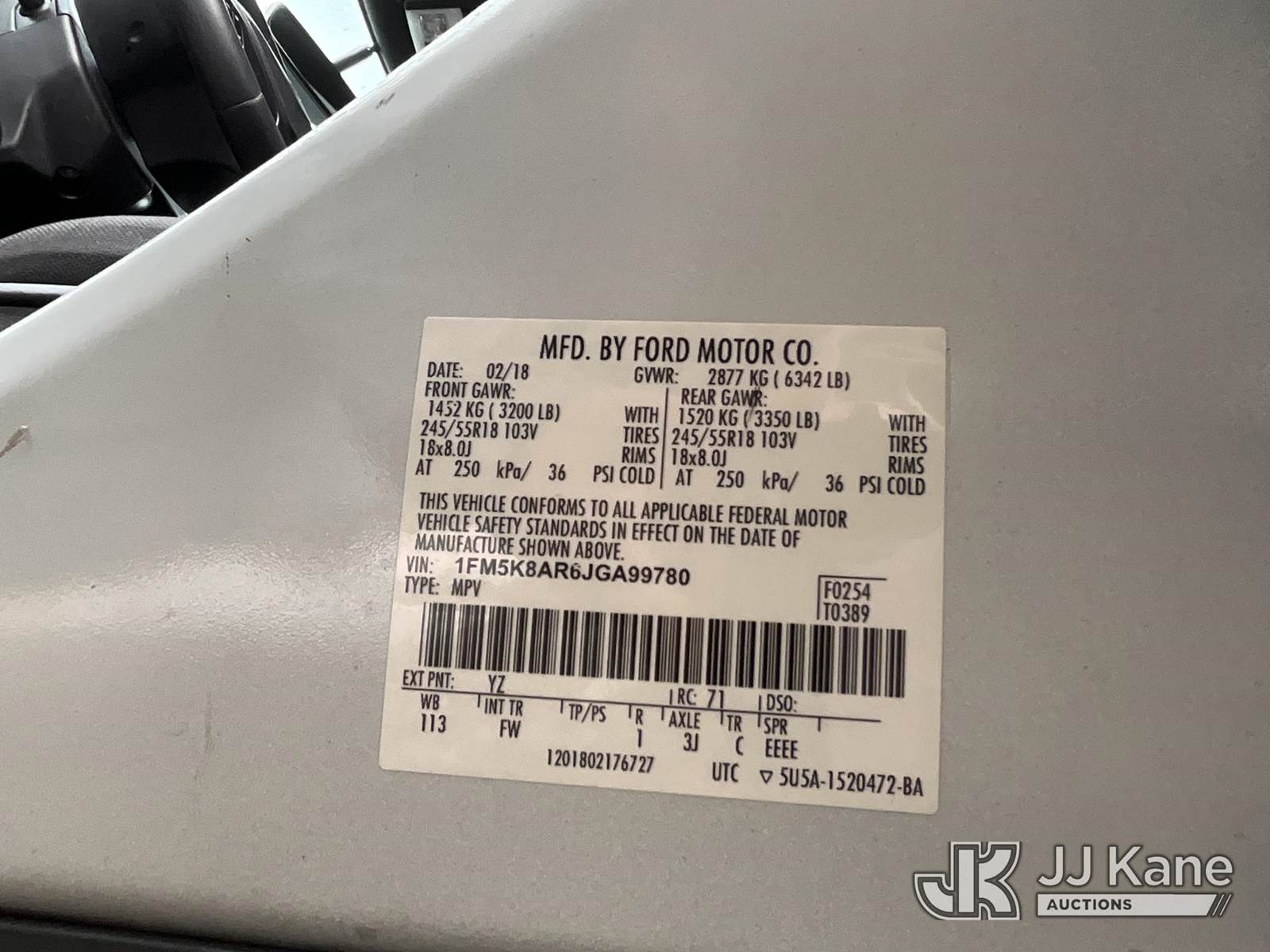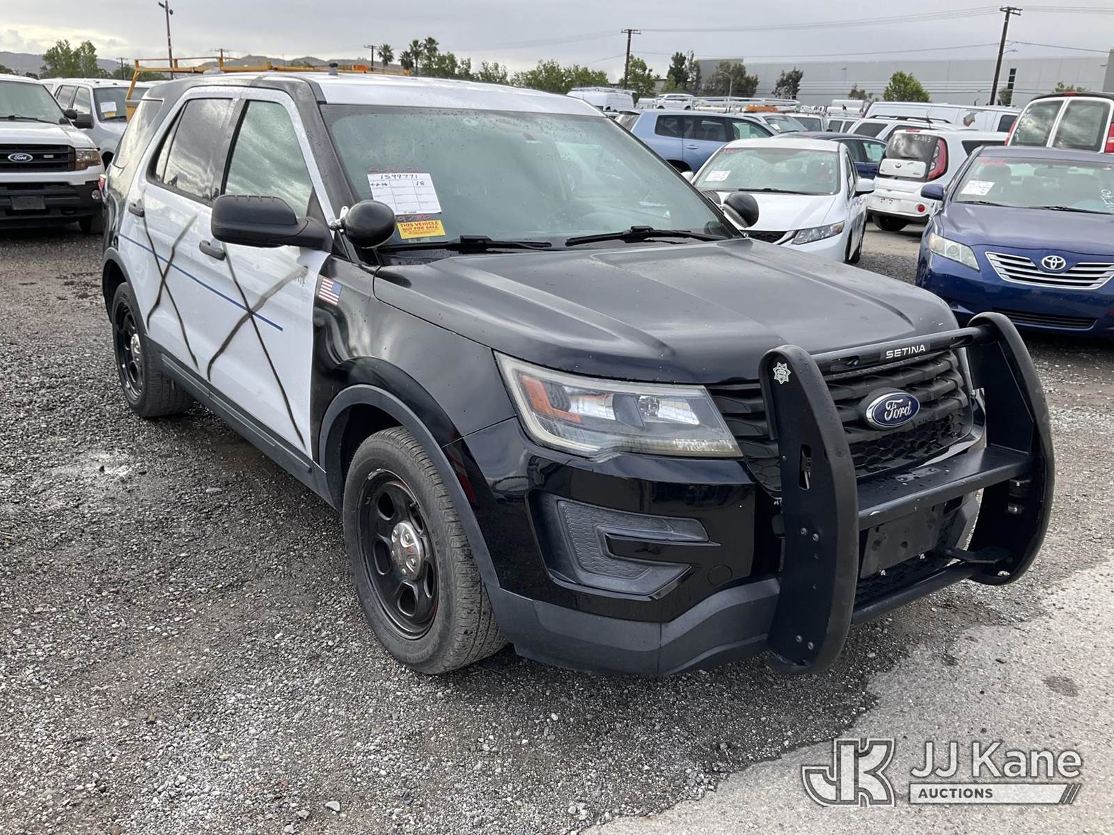2018 Ford Explorer Police 4WD 4-Door Sport Utility Vehicle, s/n 1FM5K8AR6JGA99780, 3.7L V6 DOHC 24V 4WD, GAS, 6-Speed Automatic, A/C, with Push Bar, (94,998 miles) (Runs & Moves, Interior Stripped Of Parts, Open Recall, Remedy Not Yet Available, Passed Smog, Vehicle is subject to an open NHTSA safety recall related to AN EXTERIOR A-PILLAR TRIM PART THAT DETACHES WHILE DRIVING CAN CREATE A ROAD HAZARD FOR OTHER ROAD USERS, INCREASING THE RISK OF A CRASH, but a remedy for this recall does not appear to be available. Dealer is not authorized to perform the recall repair. Periodically contact the manufacturer or check the VIN on the NHTSA website at www.safercar.gov to determine whether a remedy for the recall is available. As soon as a remedy is available, arrange to have the recall remedied with a dealer from that make of car to make such repair.) (Bidding Restricted to Licensed Vehicle Dealers Only), This is a Titled Item NOTE: This unit is being sold AS IS/WHERE IS via Timed Auction and is located in Jurupa Valley, CA. Inspection & preview days for this unit are the 2 business days prior to the first day of items closing for this auction, item is located at 4510 Muth Way Jurupa Valley, CA 92509 and hours of operations are 8a-4p. For pre-sale questions, please contact please contact Office Staff @ (310) 353-7140. Dealer License Number 45696. (Buyer is responsible for removal. Assistance by consignor or JJ Kane Auctions is not assured.)