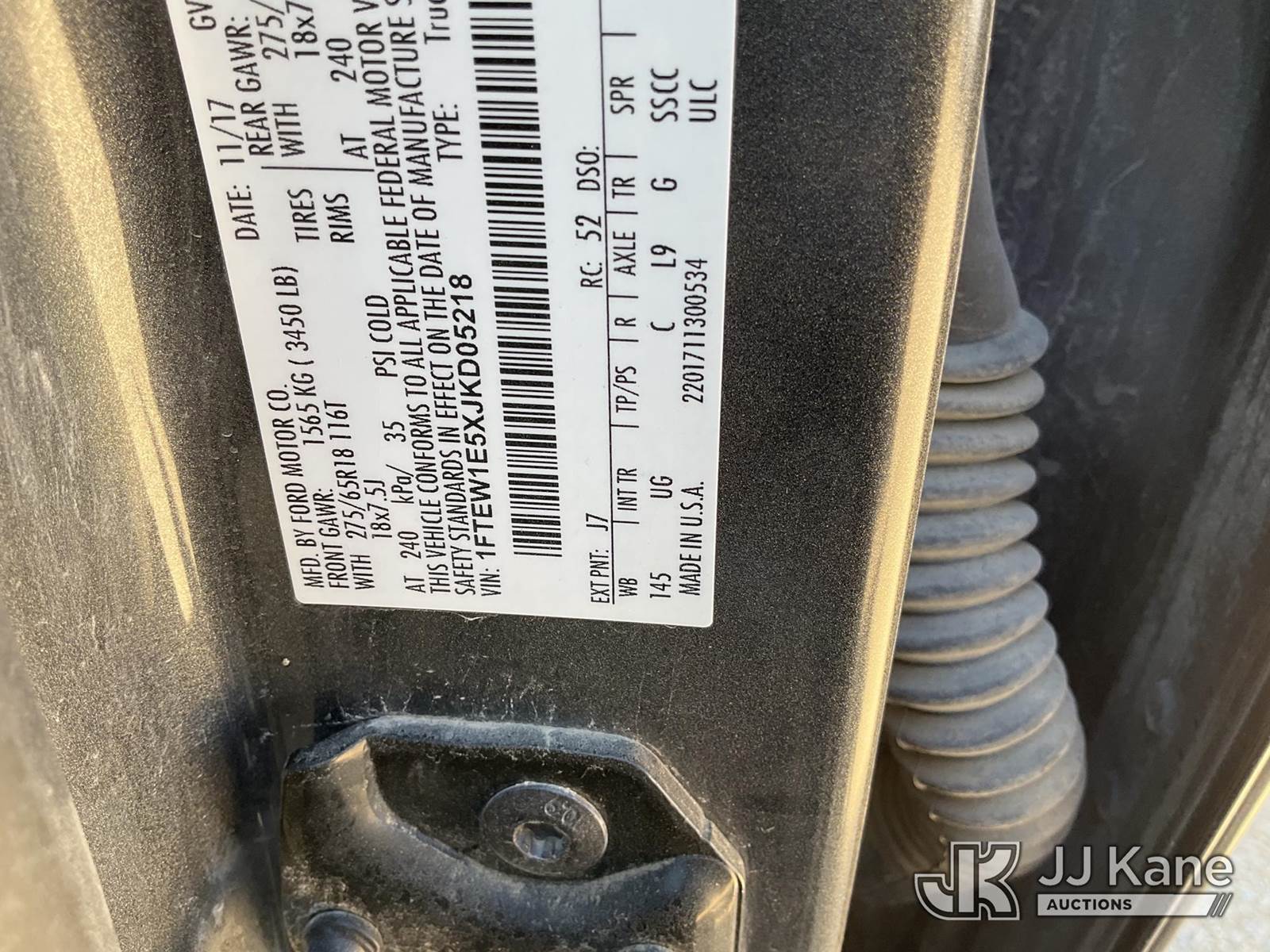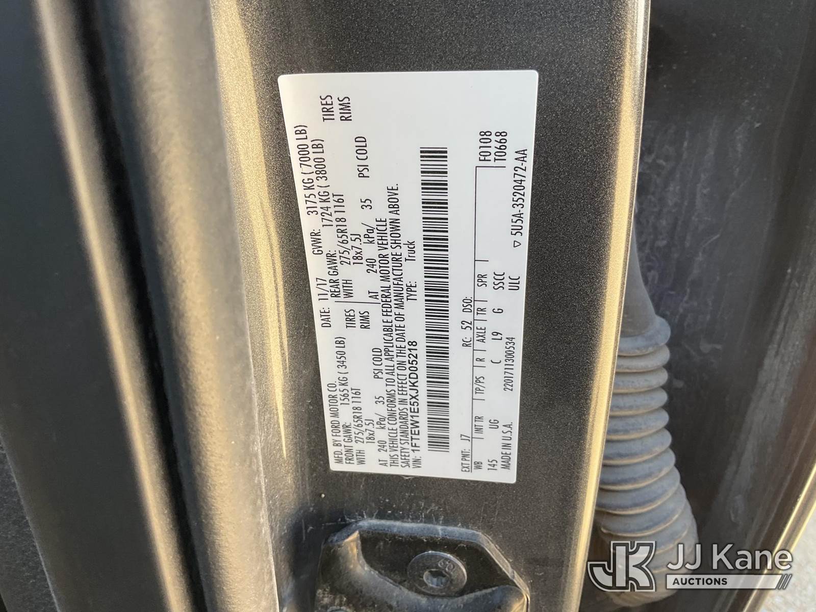 2018 Ford F-150 Crew-Cab Pickup Truck, 8-cyl gas, 4WD, Auto, A/C, with Tonneau Cover, (92,024 miles) (Runs & Moves) (Tire Pressure Light On) This is a Titled Item NOTE: This unit is being sold AS IS/WHERE IS via Timed Auction and is located in Marion, TX. Inspection & preview days for this unit are the 2 business days prior to the first day of items closing for this auction, item is located at 3292 S Santa Clara Rd Marion, TX 78124 and hours of operations are 8a-4p. For pre-sale questions, please contact Brian Jarrell @ 210-540-3147. (Buyer is responsible for removal. Assistance by consignor or JJ Kane Auctions is not assured.)