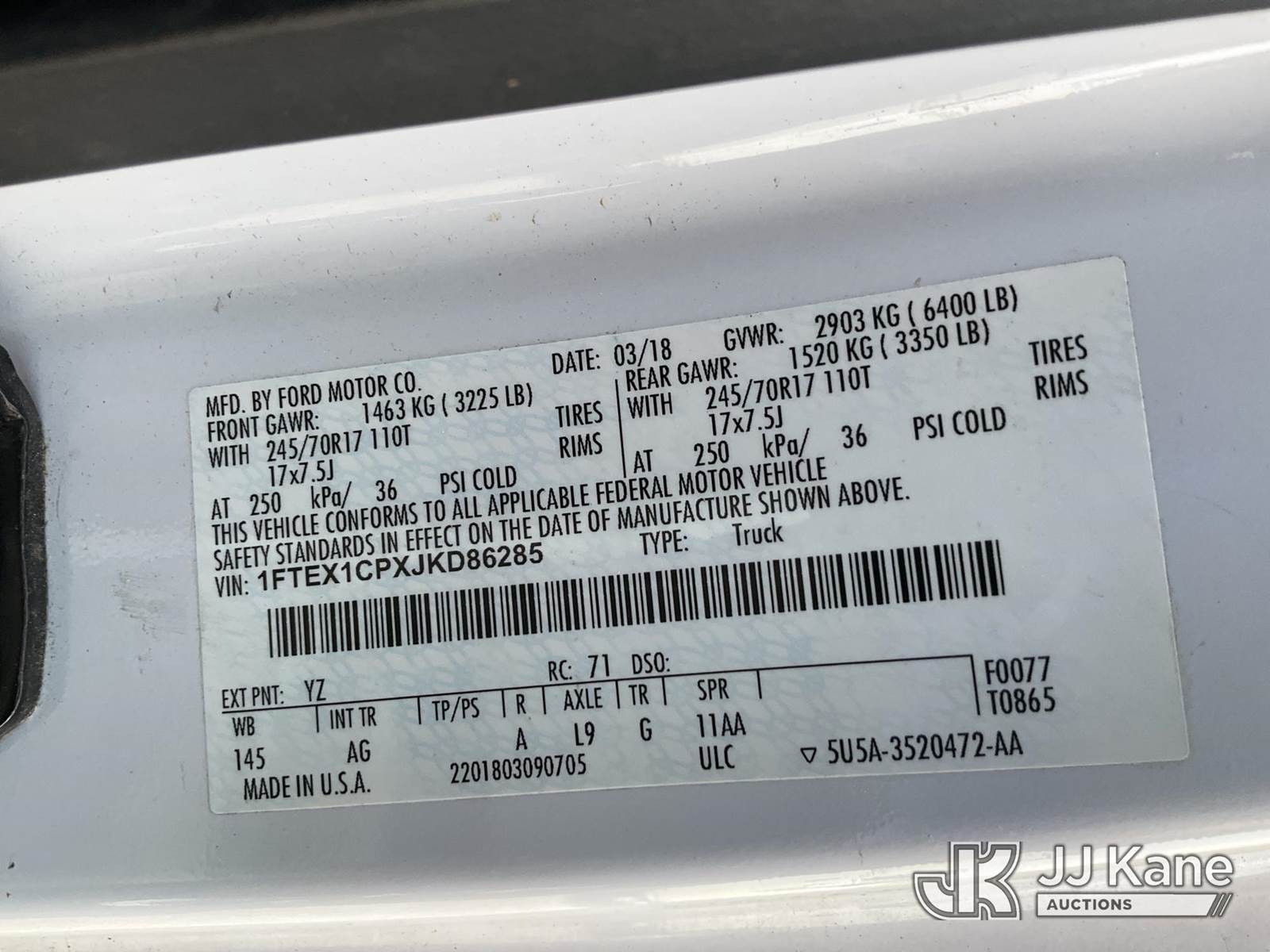 2018 Ford F-150 Extended-Cab Pickup Truck, 6-cyl gas, RWD, Auto, A/C, (229,251 miles) (Runs & Moves) (Check Engine Light On, Paint Damage) This is a Titled Item NOTE: This unit is being sold AS IS/WHERE IS via Timed Auction and is located in Verona, KY. Inspection & preview days for this unit are the 2 business days prior to the first day of items closing for this auction, item is located at 2841 Verona-Mudlick Rd Ste B Verona, KY 41092 and hours of operations are 8a-4p. For pre-sale questions, please contact Office Staff @ (502) 612-5080. Auctioneer Michael Whitebread / License # 256617. (Buyer is responsible for removal. Assistance by consignor or JJ Kane Auctions is not assured.)