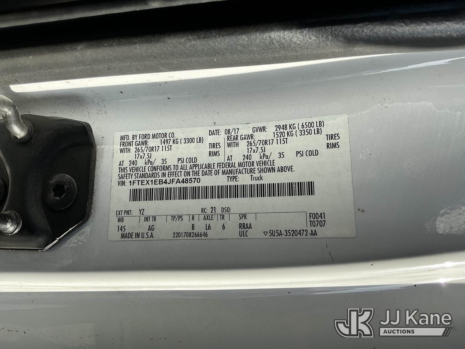 2018 Ford F-150 Extended-Cab Pickup Truck, 3.3L V6 4WD, gas, 6-Speed Automatic, A/C, (256,536 miles) (Runs & Moves) (Seller States: Needs Catalytic Converter, Oil Pan & Rear Axle Seal Leak) This is a Titled Item NOTE: This unit is being sold AS IS/WHERE IS via Timed Auction and is located in Shrewsbury, MA. Inspection & preview days for this unit are the 2 business days prior to the first day of items closing for this auction, item is located at 11 Fortune Blvd Shrewsbury, MA 01545 and hours of operations are 8a-4p. For pre-sale questions, please contact Rob Gifford @ (508) 864-4126. (Buyer is responsible for removal. Assistance by consignor or JJ Kane Auctions is not assured.)