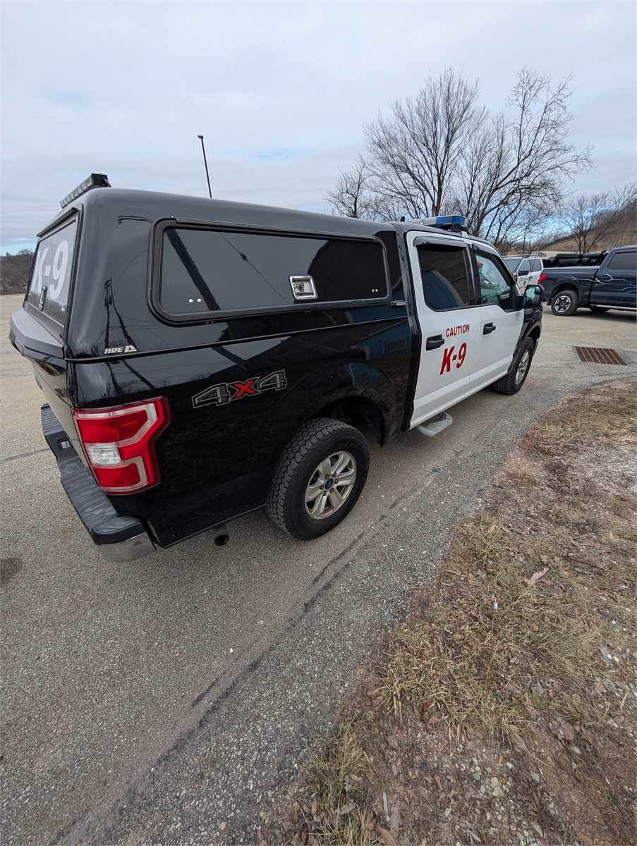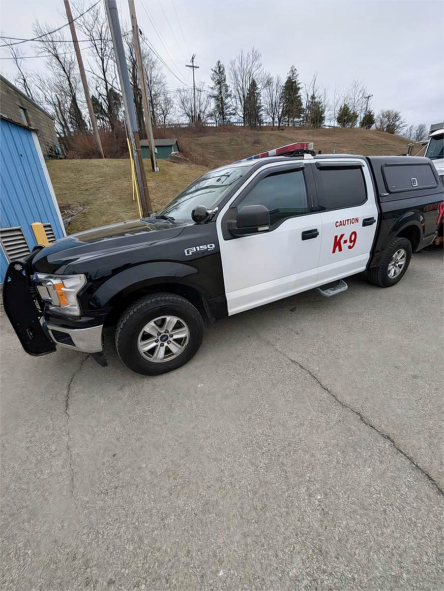 AS IS. 2018 Ford F150 former K-9 Police vehicle. Retired as part of normal rotation. No known issues. All emergency lighting, Kenwood radio wiring, siren unit, dog cage, and Hot N Pop included. K-9 stickers to remain on unit as pictured.