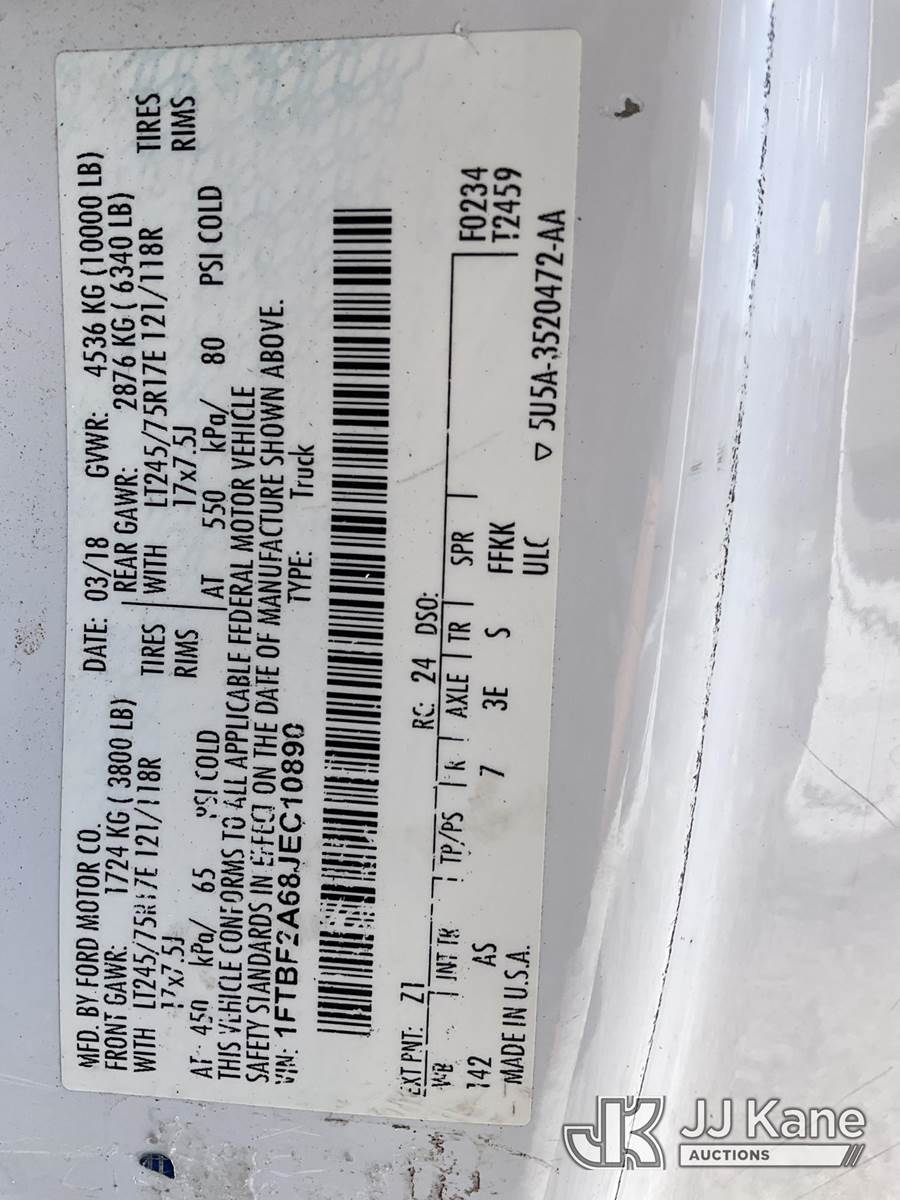 2018 Ford F-250 SD Pickup Truck, 6.2L V8 OHV 16V Gas Automatic, RWD, A/C, (24,443 miles) (Runs & Moves) (Body Damage & Rust, Paint Scratches) (FL Residents Purchasing Titled Items - tax, title & registration fees will be collected at the maximum rate of $400.00 under 25,999 and $800.00 for Over 26,000 and $250.00 for Trailers - Proof of insurance is mandatory; Out of State Residents Purchasing Title Items - tax will be collected based upon your state rate) (Reads 4,797 hours) This is a Titled Item NOTE: This unit is being sold AS IS/WHERE IS via Timed Auction and is located in West Palm Beach, FL. For Pick Up & Removal information, please contact: Andy Garcia @ 561-215-0085. Removals require 24-hr Notice by Appointment Only, Buyer/Hauler must present copy of Paid-in-Full JJ Kane Release Form upon arrival. Purchaser acknowledges ALL lots must be removed within 10 business days of Auction, or a towing & storage fee may be incurred. (Buyer is responsible for removal. Assistance by consignor or JJ Kane Auctioneers is not assured.)