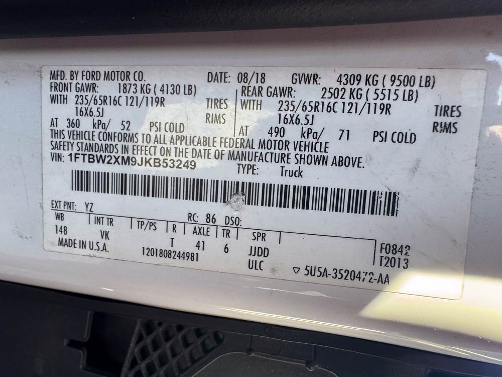 2018 Ford Transit (Wc) with a 3.7L V6 DOHC 24V engine. VIN: 1FTBW2XM9JKB53249. Odometer reading: 194099 Seller reports: , Runs & Drives No Known Issues. These vehicles are being transferred through NJ Dealer paperwork.