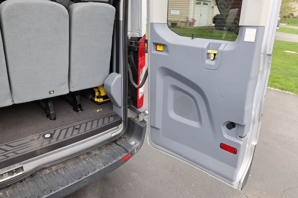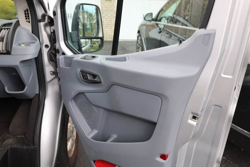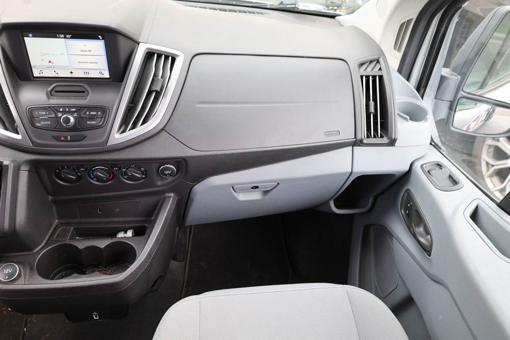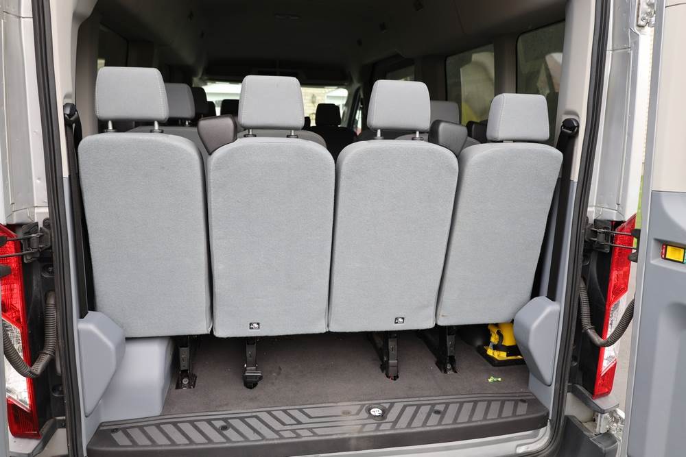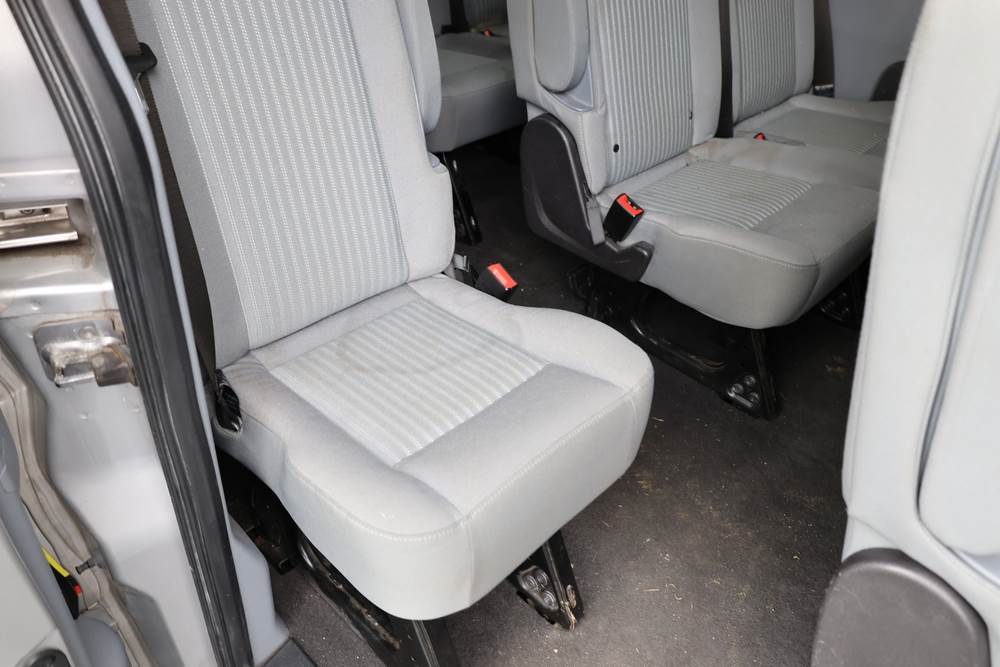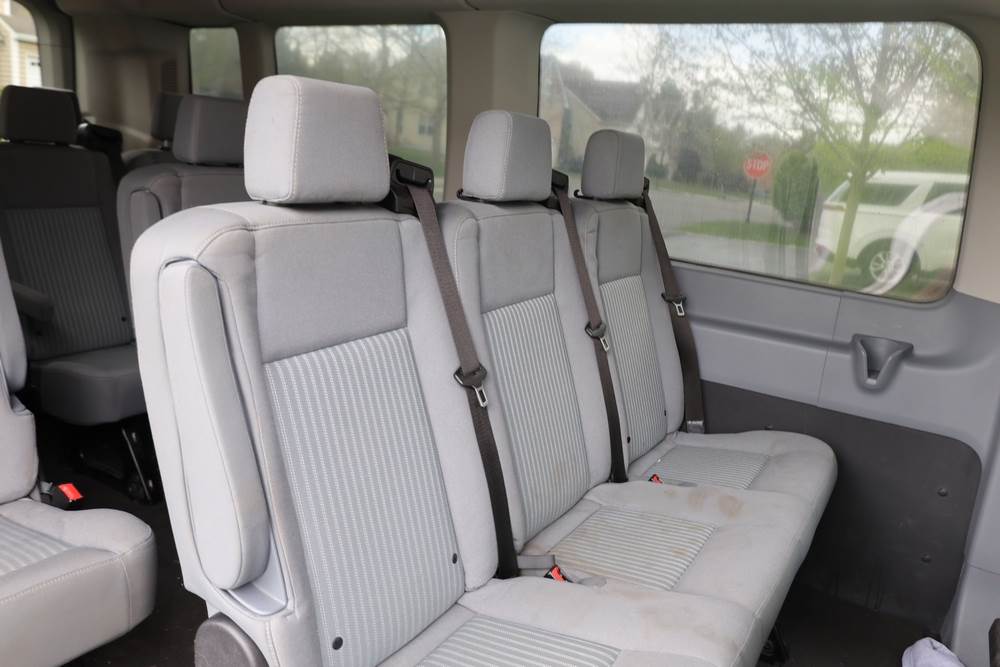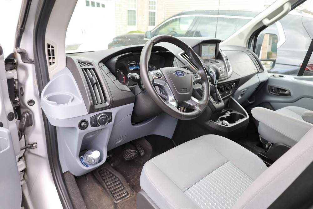 2018 Ford Transit Van 350 Wagon with a 3.5L V6 DOHC 24V engine. VIN: 1FBAX2CG4JKA70292. Odometer reading: 34521. Body: passenger van. Sliding passenger side door; dual rear doors; gray cloth interior with multiple rows of seating; seat belts; steering wheel; center dash with display screen; column mounted gear selector. Runs and drives, title and key available.
