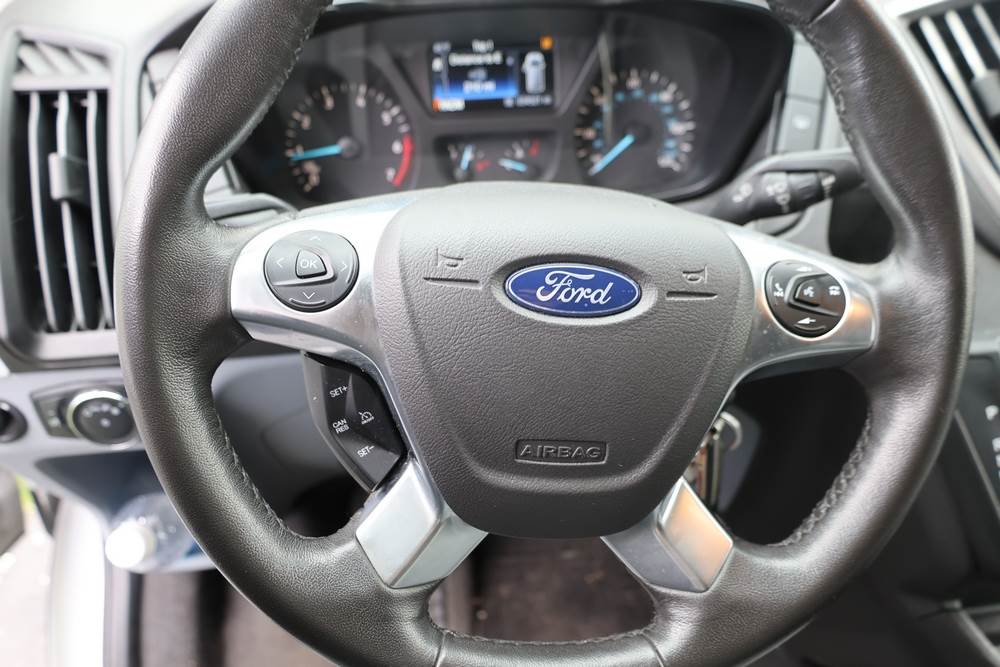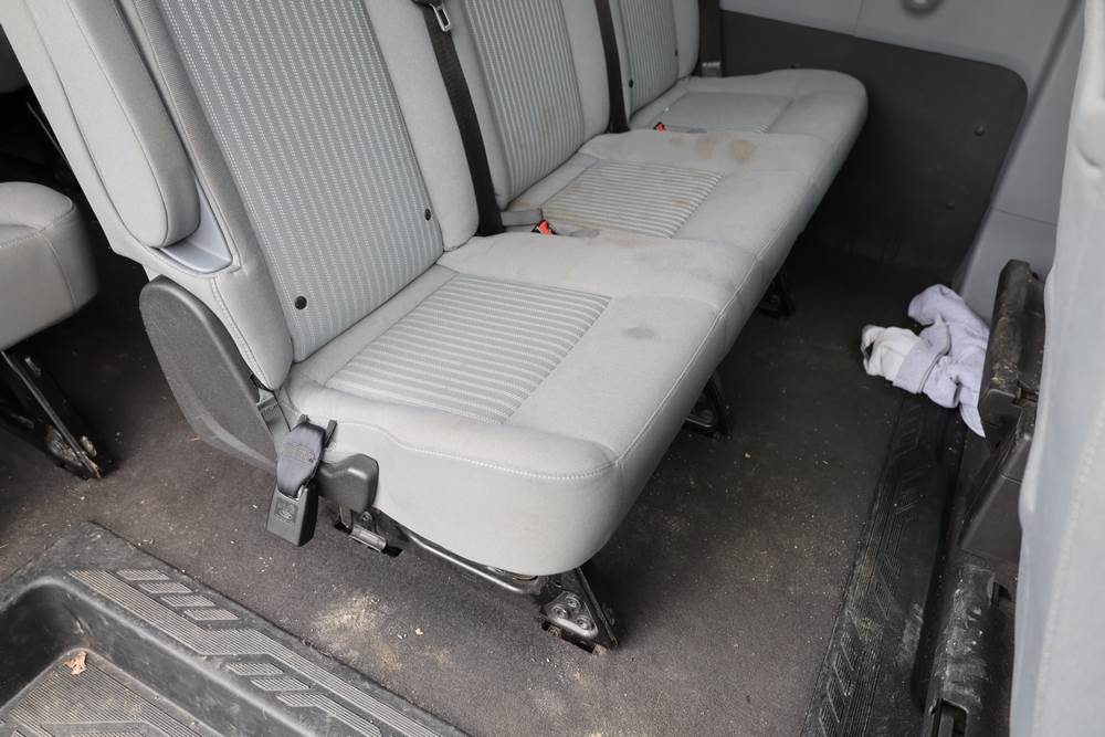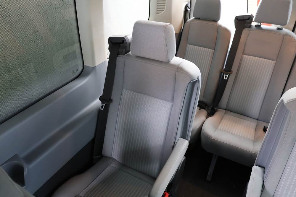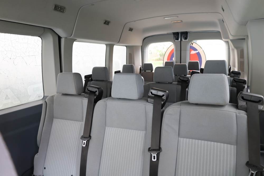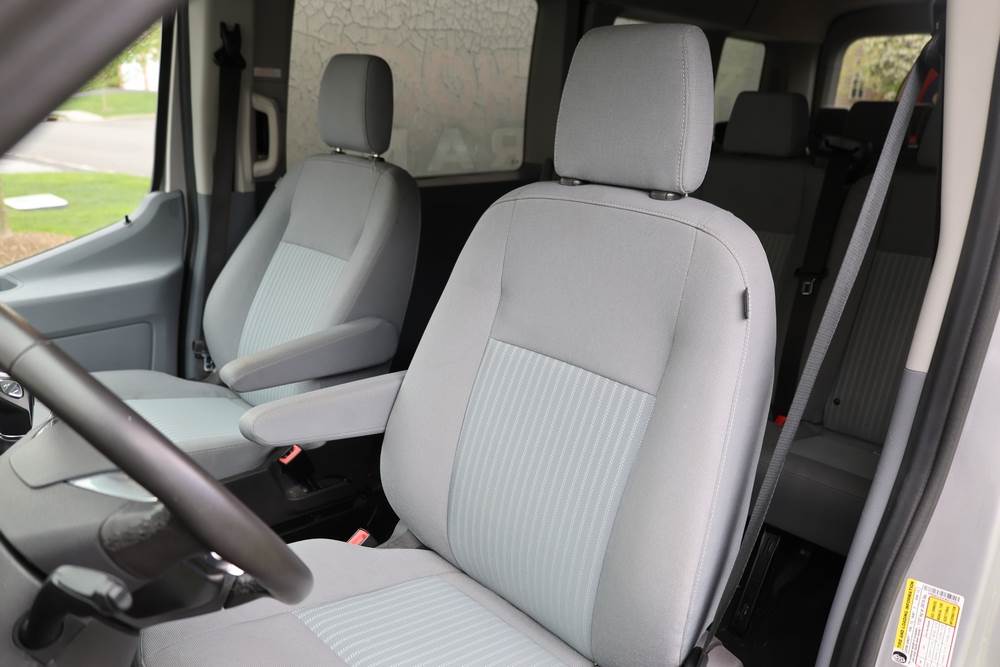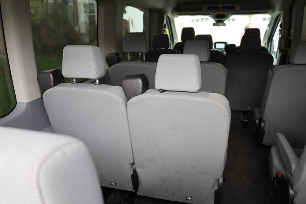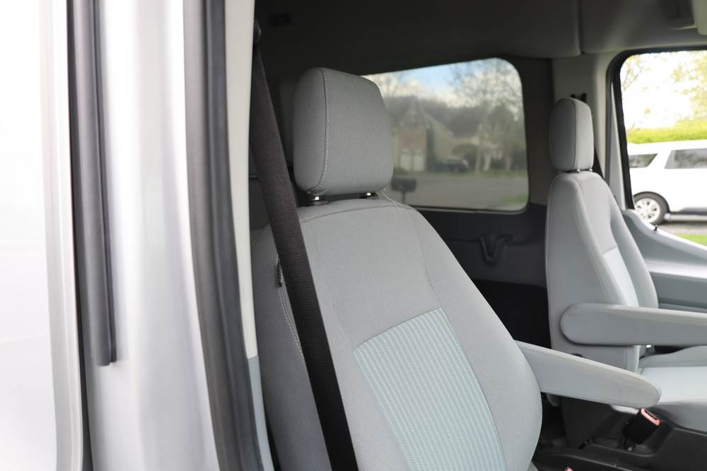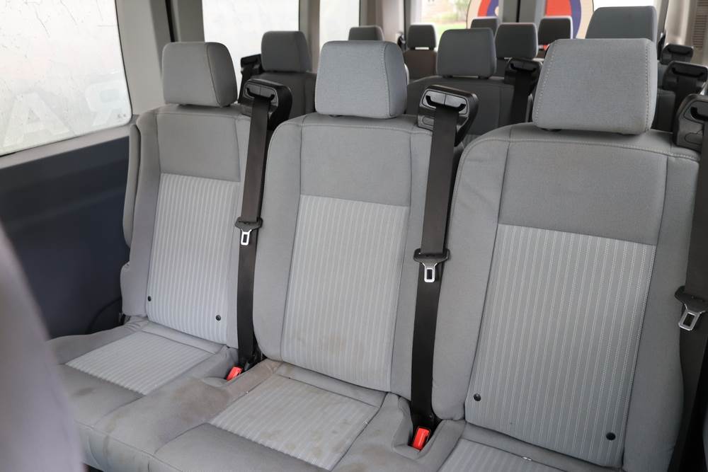 2018 Ford Transit Van 350 Wagon with a 3.5L V6 DOHC 24V engine. VIN: 1FBAX2CG4JKA70292. Odometer reading: 34521. Body: passenger van. Sliding passenger side door; dual rear doors; gray cloth interior with multiple rows of seating; seat belts; steering wheel; center dash with display screen; column mounted gear selector. Runs and drives, title and key available.