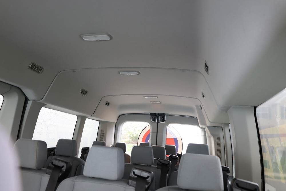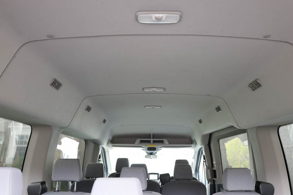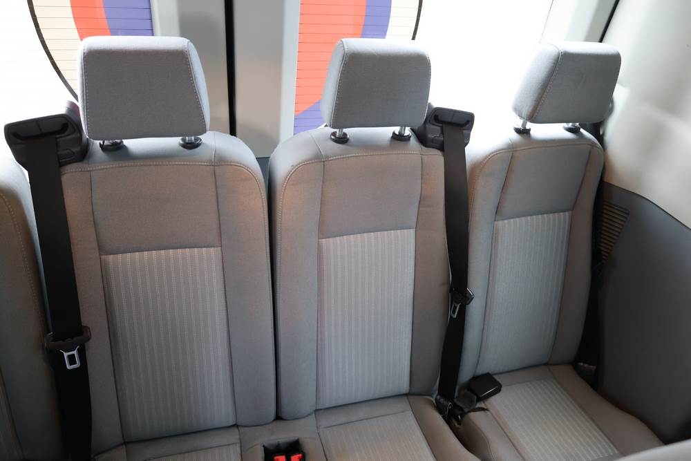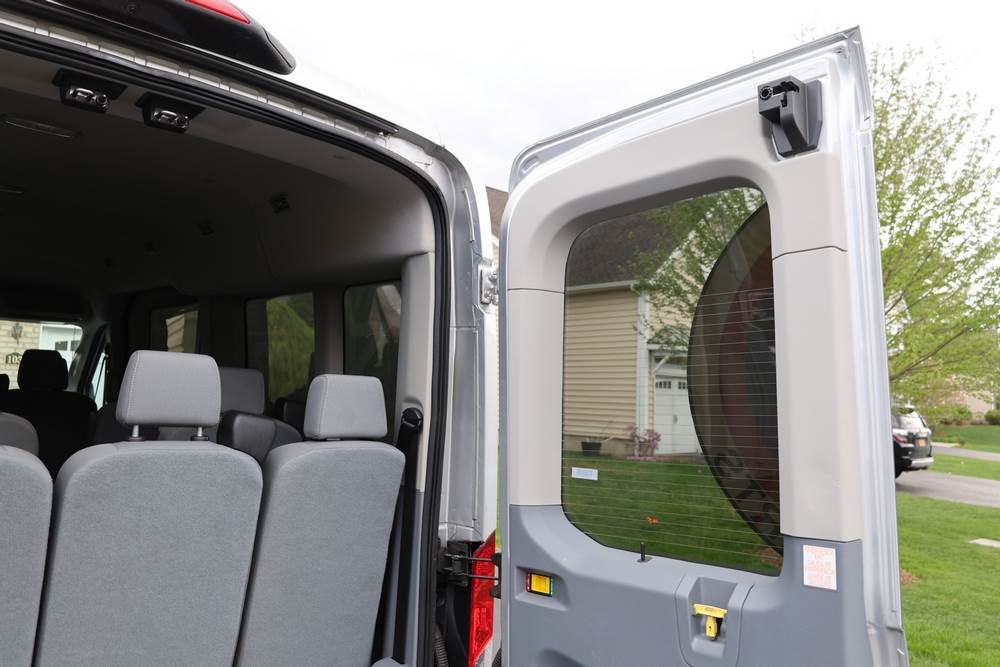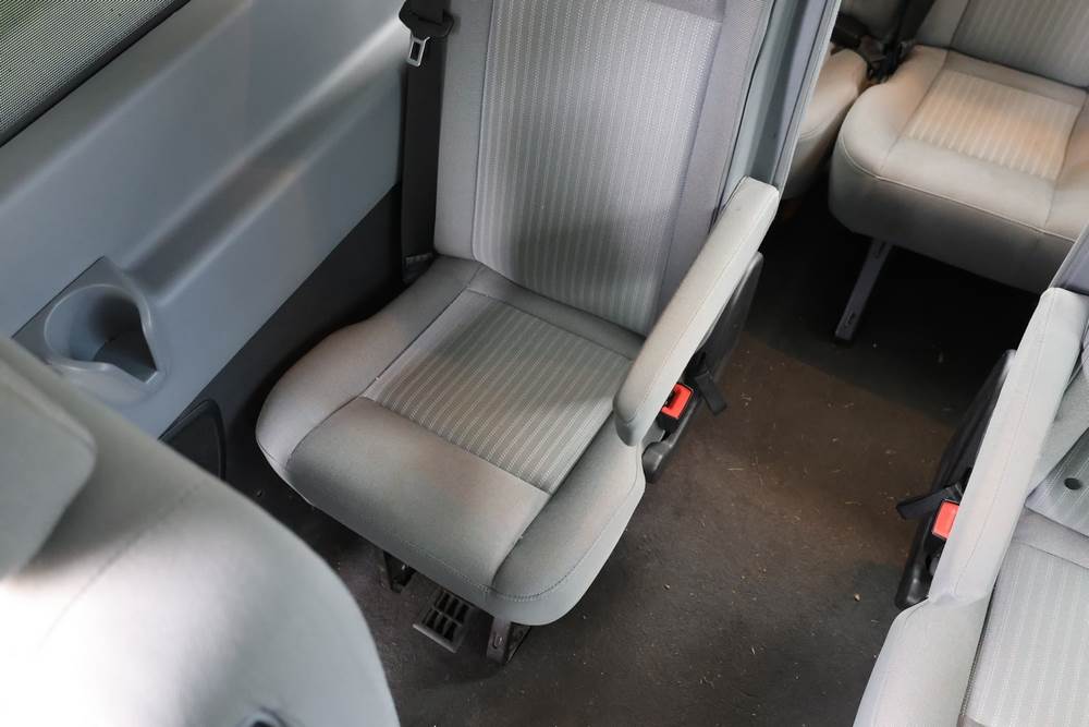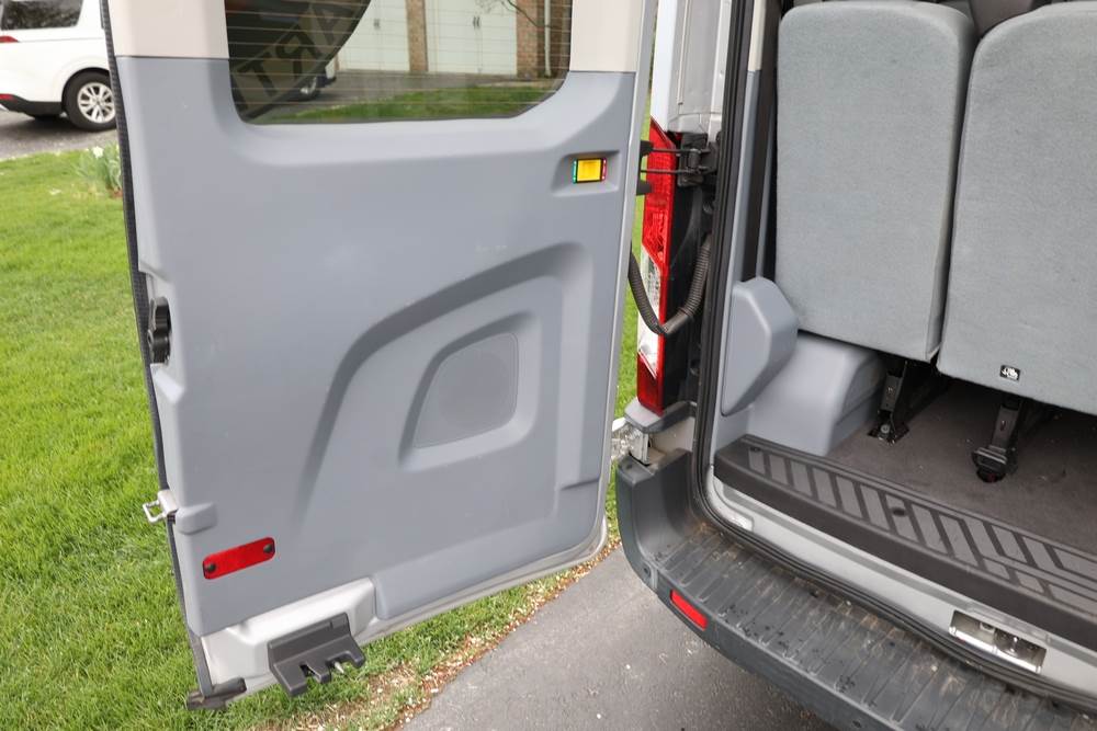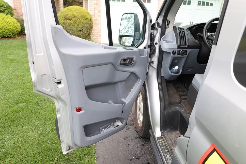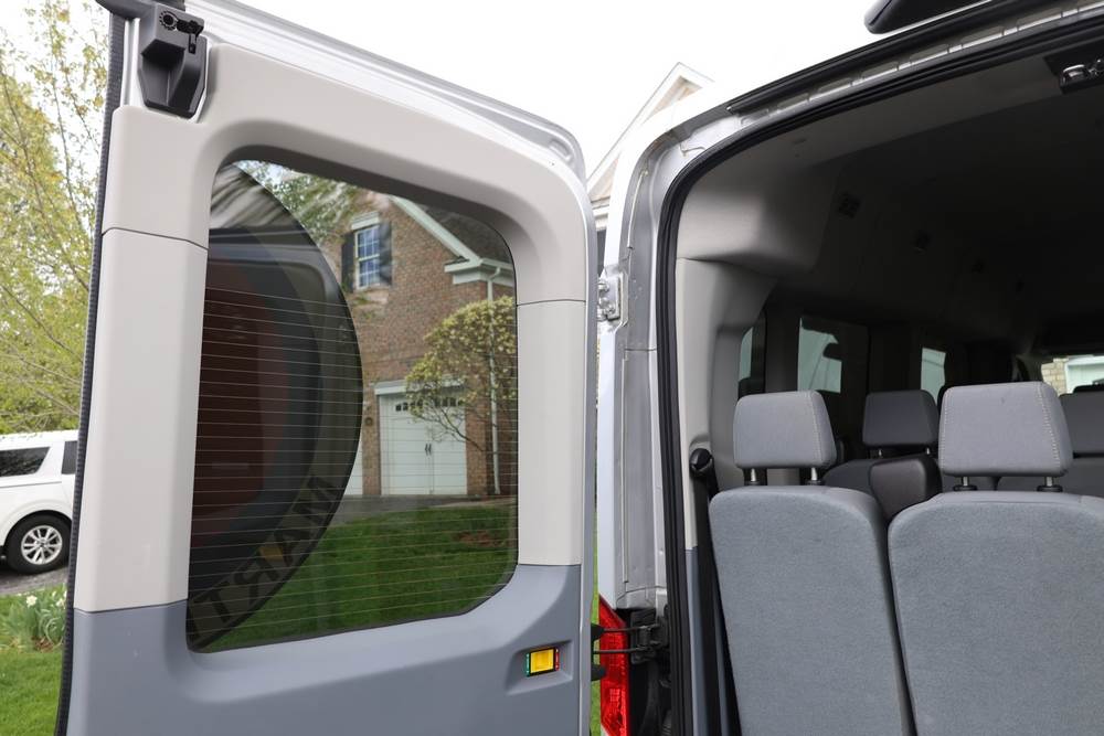 2018 Ford Transit Van 350 Wagon with a 3.5L V6 DOHC 24V engine. VIN: 1FBAX2CG4JKA70292. Odometer reading: 34521. Body: passenger van. Sliding passenger side door; dual rear doors; gray cloth interior with multiple rows of seating; seat belts; steering wheel; center dash with display screen; column mounted gear selector. Runs and drives, title and key available.