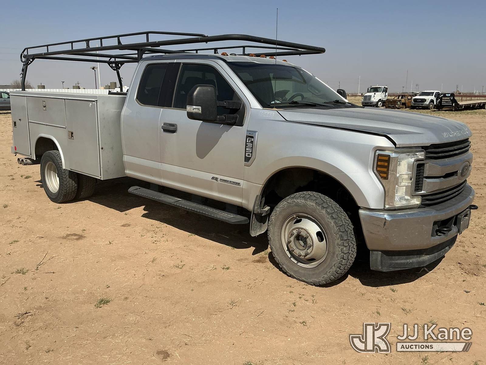 2018 Ford F-350 SD Extended-Cab Dual Wheel Pickup Truck, 6.7L Diesel 4WD, 6-Speed Automatic, A/C, with heavy duty front brush guard, ladder rack, (91,037 miles) (Runs & Moves) (Jump To Start, Check Engine Light Is On, Engine Idles Rough, Engine Exhaust Smoke Out Of The Exhaust While Idling, Windshield Cracked, Paint & Body Damage. Unit must be picked up within 10 calendar days or a $39.99/day storage fee and a $22.95 + plus tax impound fee will apply.) (Reads 3,310 hours) This is a Titled Item NOTE: This unit is being sold AS IS/WHERE IS via Timed Auction and is located in Stanton, TX. Inspection & preview days for this unit are by appointment only; please contact us at contact@jjkane.com or 84-Go-JJKane for more details. For more information & removal arrangements please contact James (Jim) Wilmes @ (432) 701-7280. (Buyer is responsible for removal. Assistance by consignor or JJ Kane Auctions is not assured.)