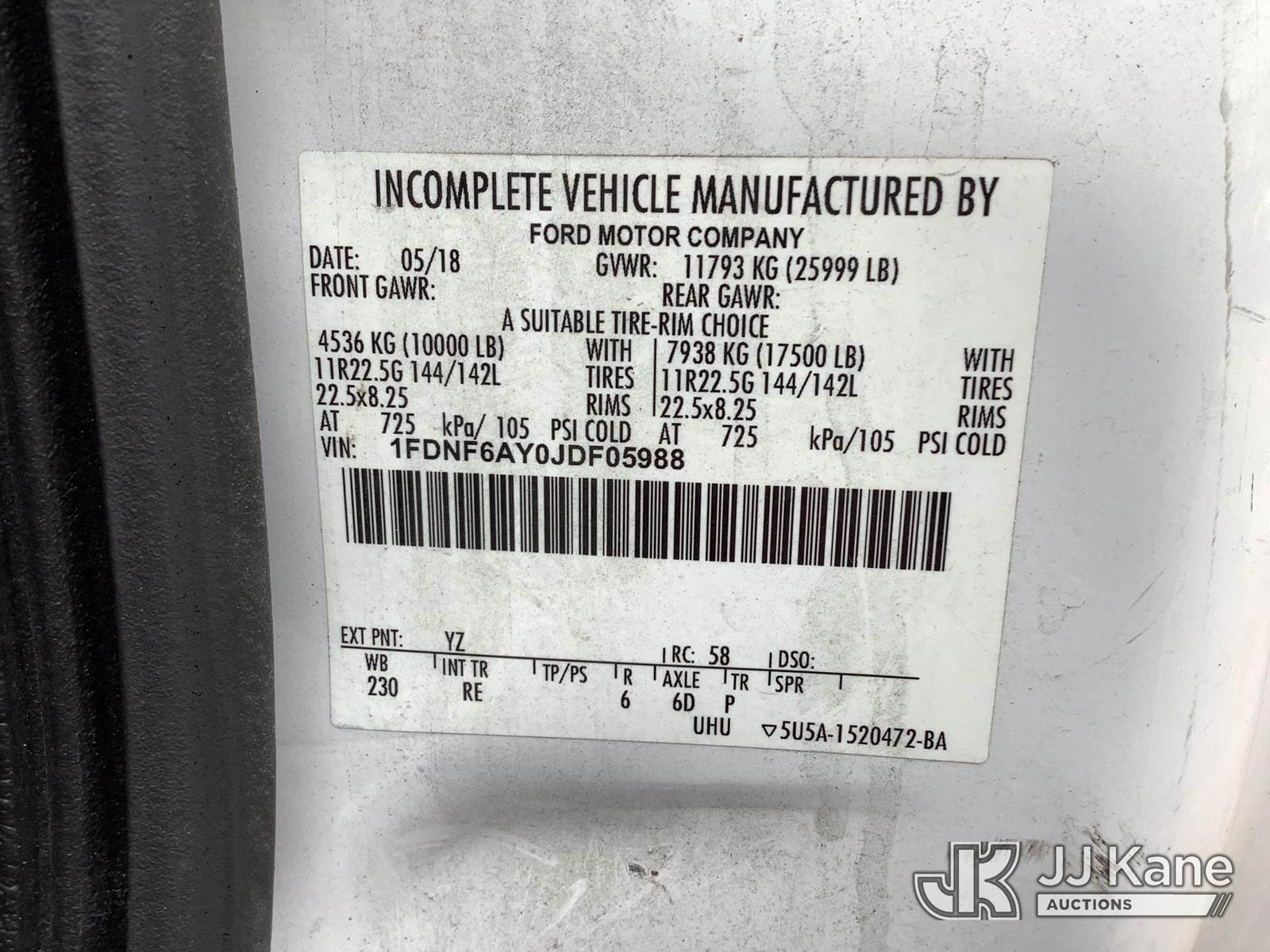 2018 Ford F-650 Van Body Truck, 6.8L V10 Gas, Auto, 4X2, A/C, with lift gate, (148,160 miles) (Runs & Moves) (Cracked Windshield) This is a Titled Item NOTE: This unit is being sold AS IS/WHERE IS via Timed Auction and is located in Graysville, AL. Inspection & preview days for this unit are by appointment only; please contact us at contact@jjkane.com or 84-Go-JJKane for more details. Alabama Auctioneer Michael Whitebread - License # 5592 (Buyer is responsible for removal. Assistance by consignor or JJ Kane Auctions is not assured.)