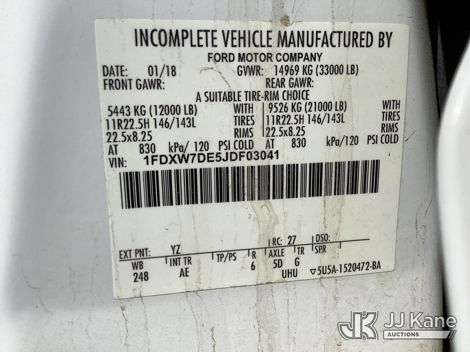 2018 Ford F-750 Crew-Cab Vacuum Excavation Truck, 6.7L diesel, 4X2, Auto, A/C, (33,057 miles) (Runs & Moves) This is a Titled Item NOTE: This unit is being sold AS IS/WHERE IS via Timed Auction and is located in Phoenix, AZ. Inspection & preview days for this unit are the 2 business days prior to the first day of items closing for this auction, item is located at 2505 W Durango St Phoenix, AZ 85009 and hours of operations are 8a-4p. For pre-sale questions, please contact Andrew Espinoza @ (602) 393-8107. (Buyer is responsible for removal. Assistance by consignor or JJ Kane Auctions is not assured.)