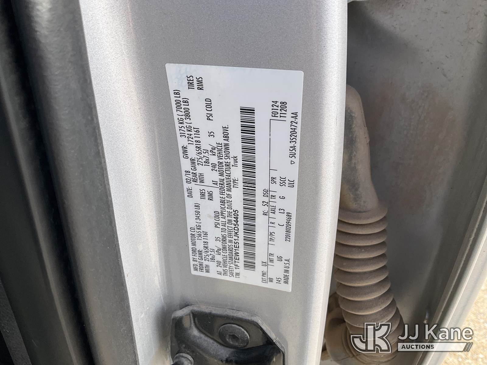 2018 Ford F150 4x4 Crew-Cab Pickup Truck, 8-cyl gas, Auto, A/C, (139,728 miles) (Southern Company Unit) (Southern Company Unit) (Runs & Moves) (Jump To Start, Check Engine Light On, Service Light On, Body Damage) This is a Titled Item NOTE: This unit is being sold AS IS/WHERE IS via Timed Auction and is located in Wichita, KS. For more information & removal arrangements please contact Ricky McPherson 816-610-2250 (Buyer is responsible for removal. Assistance by consignor or JJ Kane Auctioneers is not assured.)