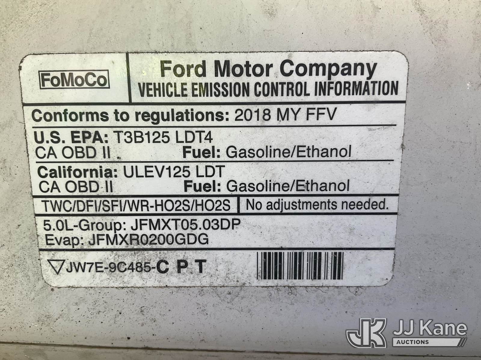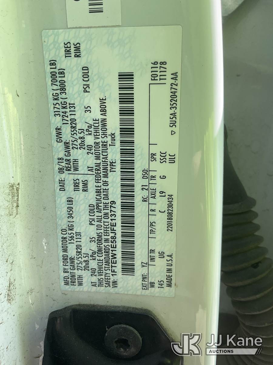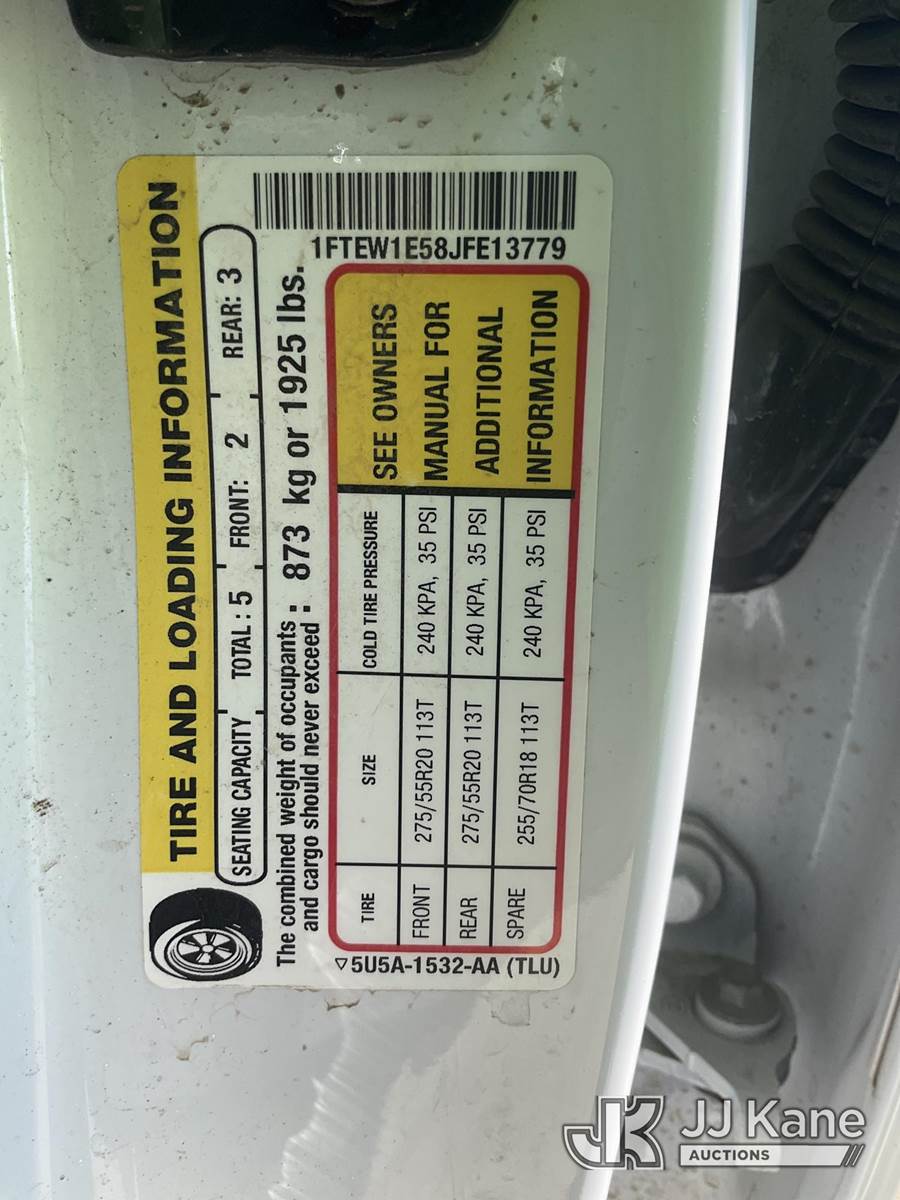 2018 Ford F150 4x4 Crew-Cab Pickup Truck, 5.0L V8 OHV 32V gas, 6-Speed Automatic, A/C, (266,725 miles) (Runs & Moves) (Check Engine Light On, Engine Noise, Paint Damage) (Reads 9,942 hours) This is a Titled Item NOTE: This unit is being sold AS IS/WHERE IS via Timed Auction and is located in South Beloit, IL. Inspection & preview days for this unit are the 2 business days prior to the first day of items closing for this auction, item is located at 14354 Dearborn Ave South Beloit, IL and hours of operations are 8a-4p. For pre-sale questions, please contact Derek Eklund at (608) 904-0618 or (derek.eklund@jjkane.com). (Buyer is responsible for removal. Assistance by consignor or JJ Kane Auctions is not assured.)