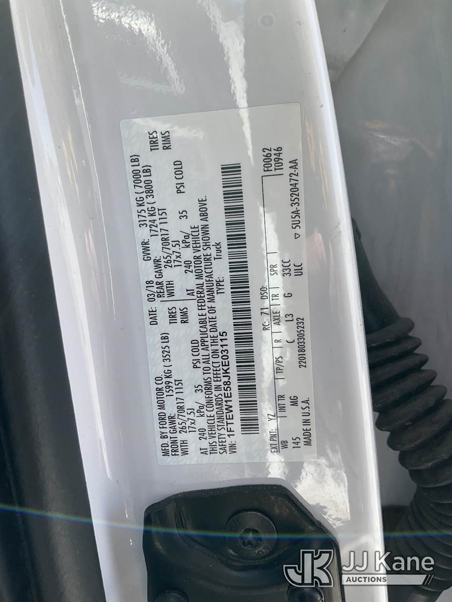 2018 Ford F150 4x4 Crew-Cab Pickup Truck, 5.0L V8 OHV 32V gas, 6-Speed Automatic, A/C, with service cap, (111,329 miles) (Runs & Moves) (Engine Noise, Missing Center Console) This is a Titled Item NOTE: This unit is being sold AS IS/WHERE IS via Timed Auction and is located in Las Vegas, NV. Inspection & preview days for this unit are the 2 business days prior to the first day of items closing for this auction, item is located at 14655 Grand Valley Pkwy Las Vegas, NV 89165 and hours of operations are 8a-4p. Titles executed exactly as bidder registered. Ensure your name and/or business name and address in JJ Kane and/or ProxiBid is correct before bidding. For pre-sale questions, please contact Office Staff @ (801) 519-0123 and provide sale date and lot number. Las Vegas Dealer License Number DLR000053086 / OHV000053094. (Buyer is responsible for removal. Assistance by consignor or JJ Kane Auctions is not assured.)