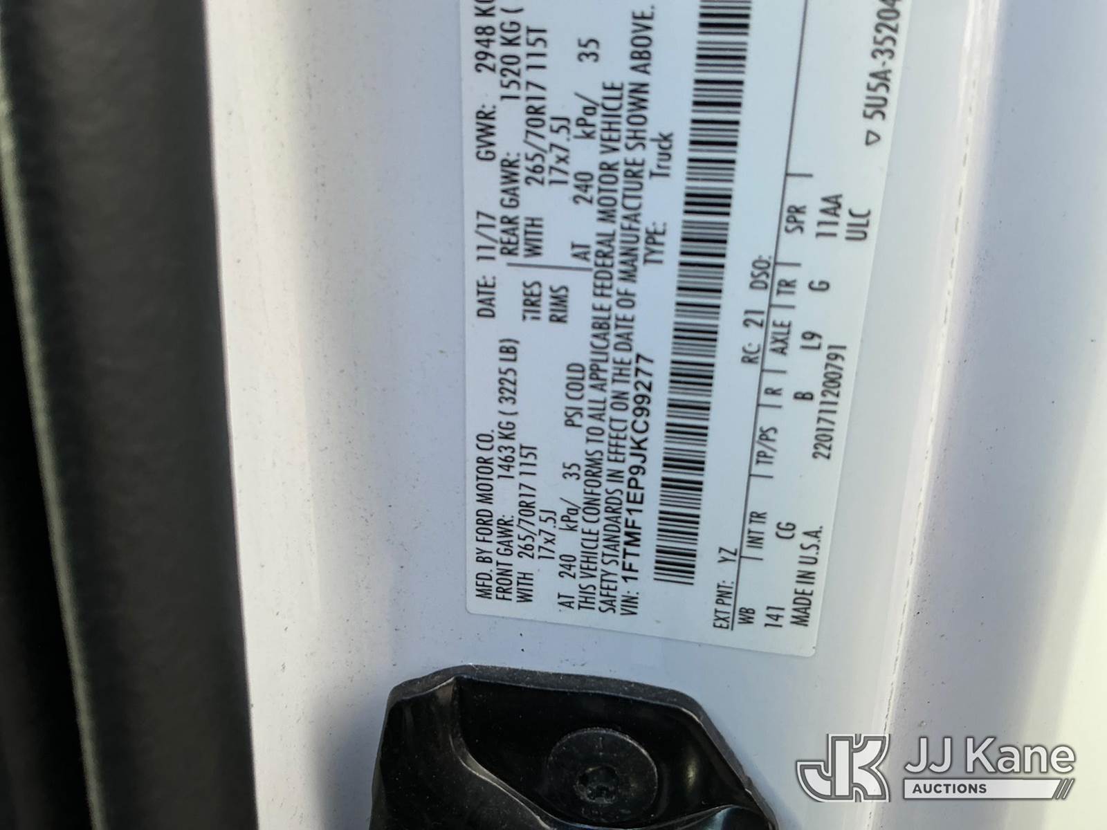 2018 Ford F150 4x4 Pickup Truck, 6-cyl gas, Auto, A/C, (111,580 miles) Co-Op Unit (Runs & Moves) (Check Engine Light On, Paint Damage) This is a Titled Item NOTE: This unit is being sold AS IS/WHERE IS via Timed Auction and is located in Buxton, NC. Inspection & preview days for this unit are by appointment only; please contact us at contact@jjkane.com or 84-Go-JJKane for more details. (Buyer is responsible for removal. Assistance by consignor or JJ Kane Auctions is not assured.)