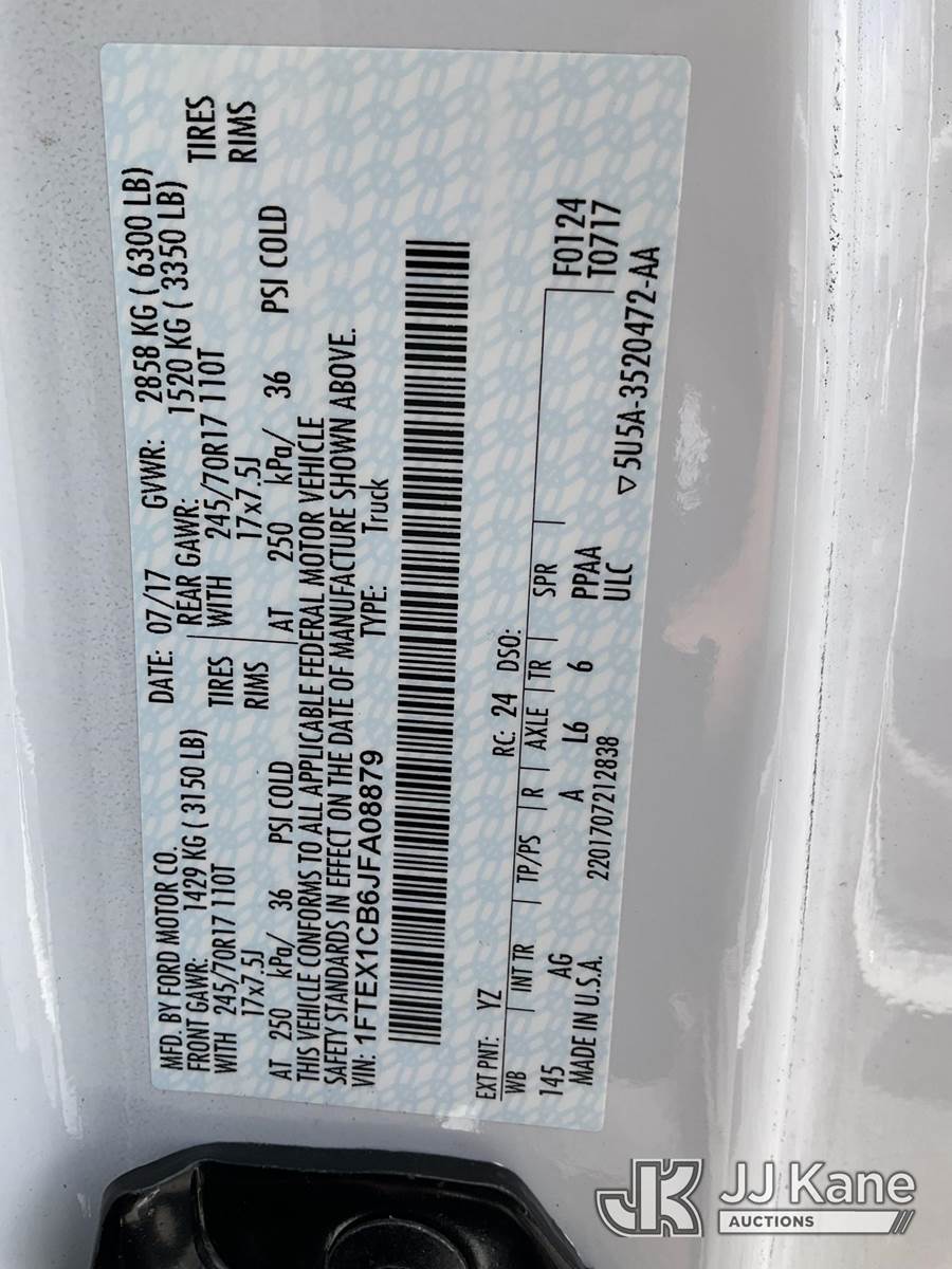 2018 Ford F150 Extended-Cab Pickup Truck, 6-cyl gas, RWD, Auto, A/C, (20,094 miles) (Runs & Moves) (FL Residents Purchasing Titled Items – tax, title & registration fees will be collected at the maximum rate of $400.00 under 25,999 and $800.00 for Over 26,000 and $250.00 for Trailers – Proof of insurance is mandatory; Out of State Residents Purchasing Title Items – tax will be collected based upon your state rate) (Reads 1,656 hours) This is a Titled Item NOTE: This unit is being sold AS IS/WHERE IS via Timed Auction and is located in West Palm Beach, FL. For Pick Up & Removal information, please contact: Andy Garcia @ 561-215-0085. Removals require 24-hr Notice by Appointment Only, Buyer/Hauler must present copy of Paid-in-Full JJ Kane Release Form upon arrival. Purchaser acknowledges ALL lots must be removed within 10 business days of Auction, or a towing & storage fee may be incurred. (Buyer is responsible for removal. Assistance by consignor or JJ Kane Auctions is not assured.)
