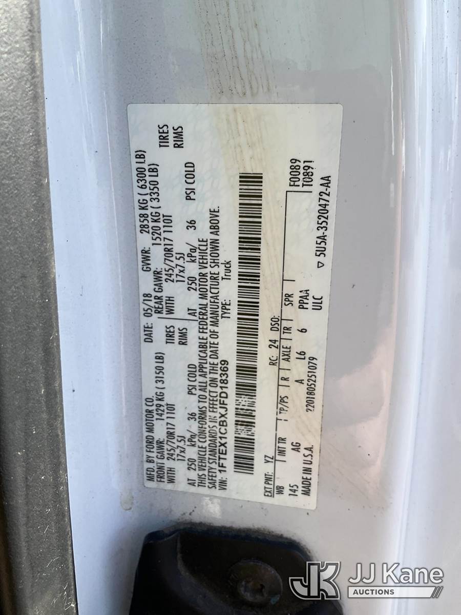 2018 Ford F150 Extended-Cab Pickup Truck, 3.3L V6 DOHC 24V gas, RWD, 6-Speed Automatic, A/C, (173,318 miles) (Runs & Moves) (Airbag Light On, Body/Paint Damage) This is a Titled Item NOTE: This unit is being sold AS IS/WHERE IS via Timed Auction and is located in Ocala, FL. Inspection & preview days for this unit are by appointment only; please contact us at contact@jjkane.com or 84-Go-JJKane for more details. For more information & removal arrangements please contact Mike Lessard @ (352) 629-6677. (Buyer is responsible for removal. Assistance by consignor or JJ Kane Auctions is not assured.)