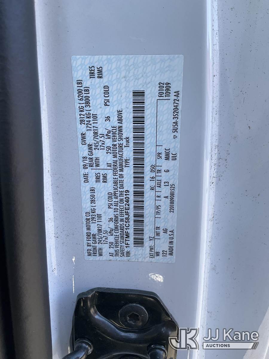 2018 Ford F150 Pickup Truck, 8-cyl gas, Auto, A/C, (53,351 miles) (Wrecked) (Runs) (Airbags Deployed, Does Not Move, Condition Unknown, Check Engine Light On, Traction Control Light On, Cracked Windshield, Passenger Side Front Wheel Damaged, Body Damage) This is a Titled Item NOTE: This unit is being sold AS IS/WHERE IS via Timed Auction and is located in Ocala, FL. Inspection & preview days for this unit are by appointment only; please contact us at contact@jjkane.com or 84-Go-JJKane for more details. For more information & removal arrangements please contact Mike Lessard @ (352) 629-6677. (Buyer is responsible for removal. Assistance by consignor or JJ Kane Auctioneers is not assured.)