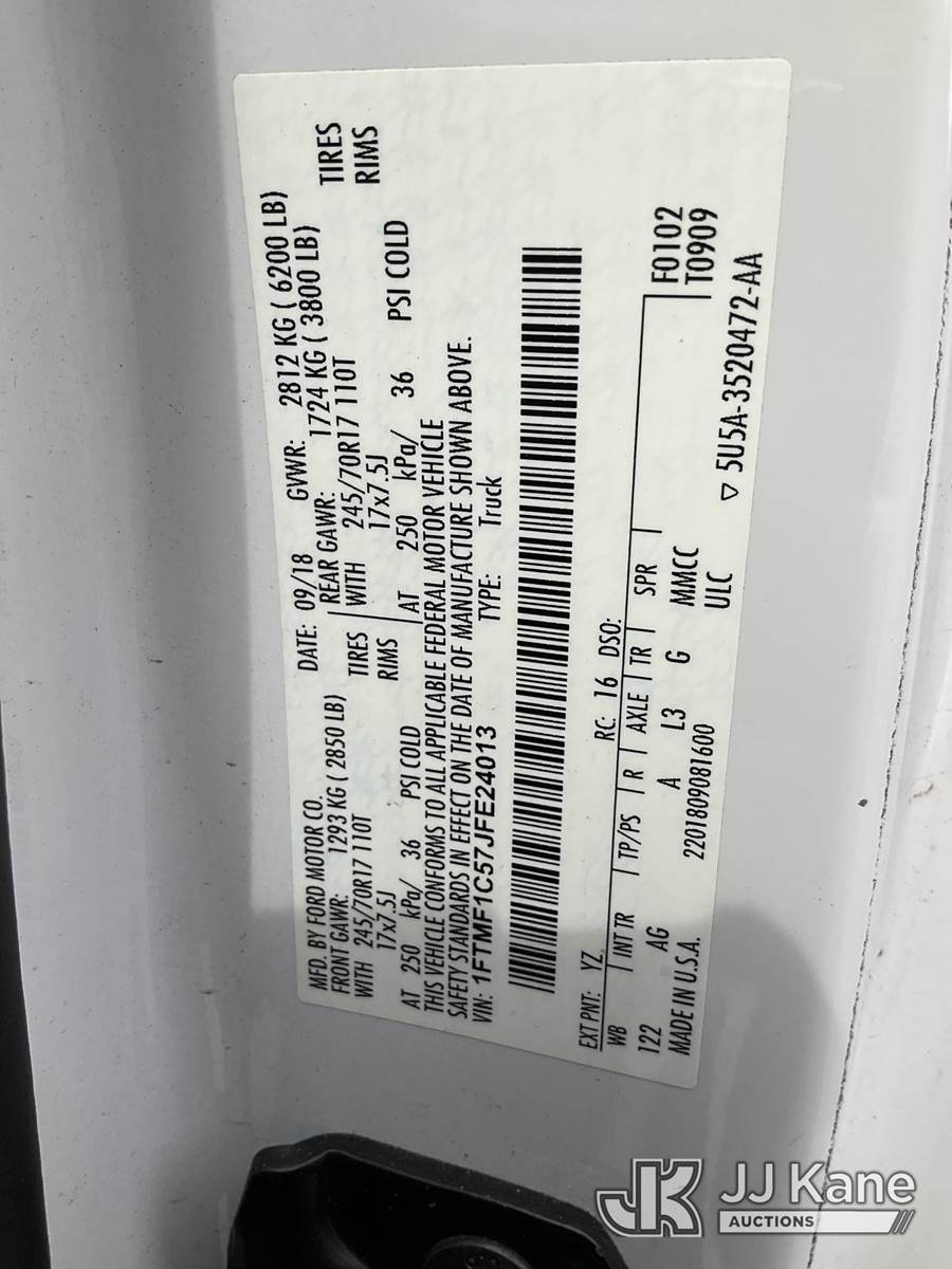 2018 Ford F150 Pickup Truck, 8-cyl gas, Auto, RWD, A/C, (87,140 miles) (Duke Unit) (Runs, Jump to Start, ABS Light Is On, Engine Light Is On. Emergency Brake Is Locked Up) This is a Titled Item NOTE: This unit is being sold AS IS/WHERE IS via Timed Auction and is located in Ocala, FL. Inspection & preview days for this unit are by appointment only; please contact us at contact@jjkane.com or 84-Go-JJKane for more details. For more information & removal arrangements please contact Mike Lessard @ (352) 629-6677. (Buyer is responsible for removal. Assistance by consignor or JJ Kane Auctioneers is not assured.)
