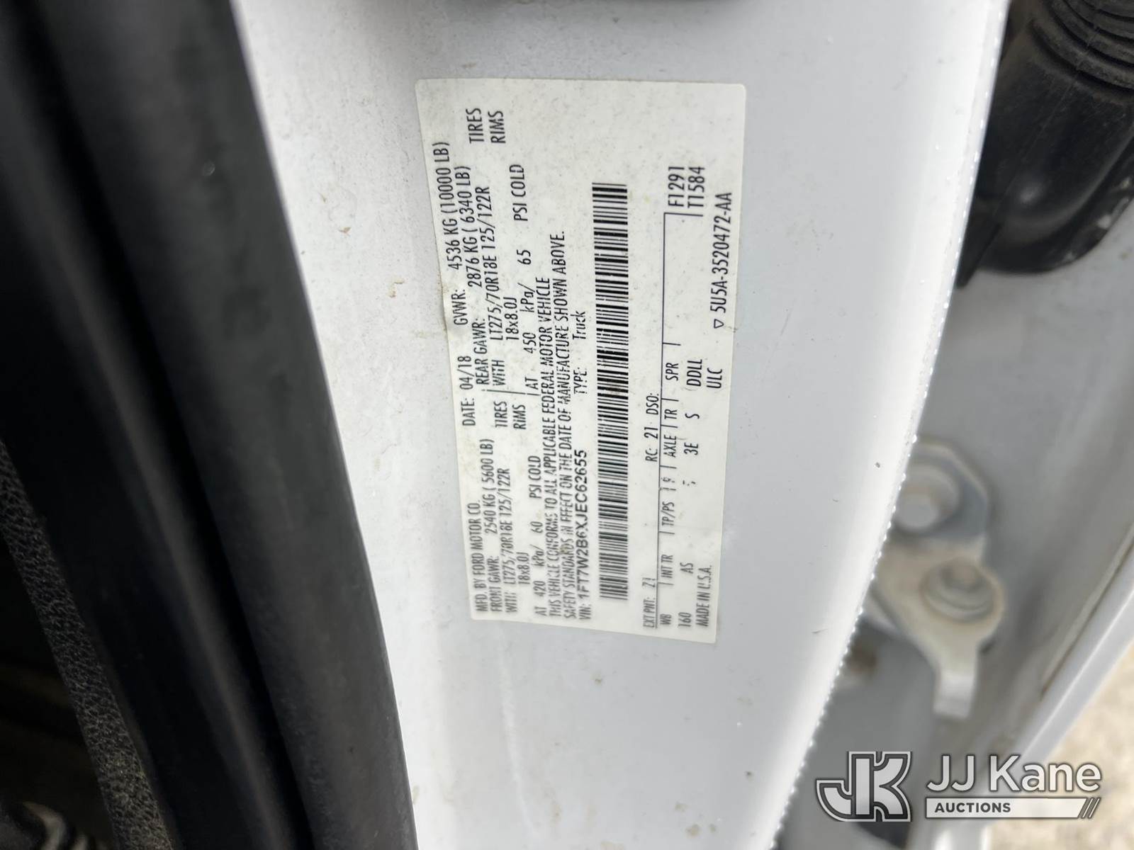 2018 Ford F250 4x4 Crew-Cab Pickup Truck, 8-cyl gas, 6-Speed Automatic, A/C, (257,909 miles) (Runs & Moves) (Engine Noise, Body Damage) This is a Titled Item NOTE: This unit is being sold AS IS/WHERE IS via Timed Auction and is located in Chattanooga, TN. For more information & removal arrangements please contact Dylan Evans @ 205-936-1094 (Buyer is responsible for removal. Assistance by consignor or JJ Kane Auctions is not assured.)