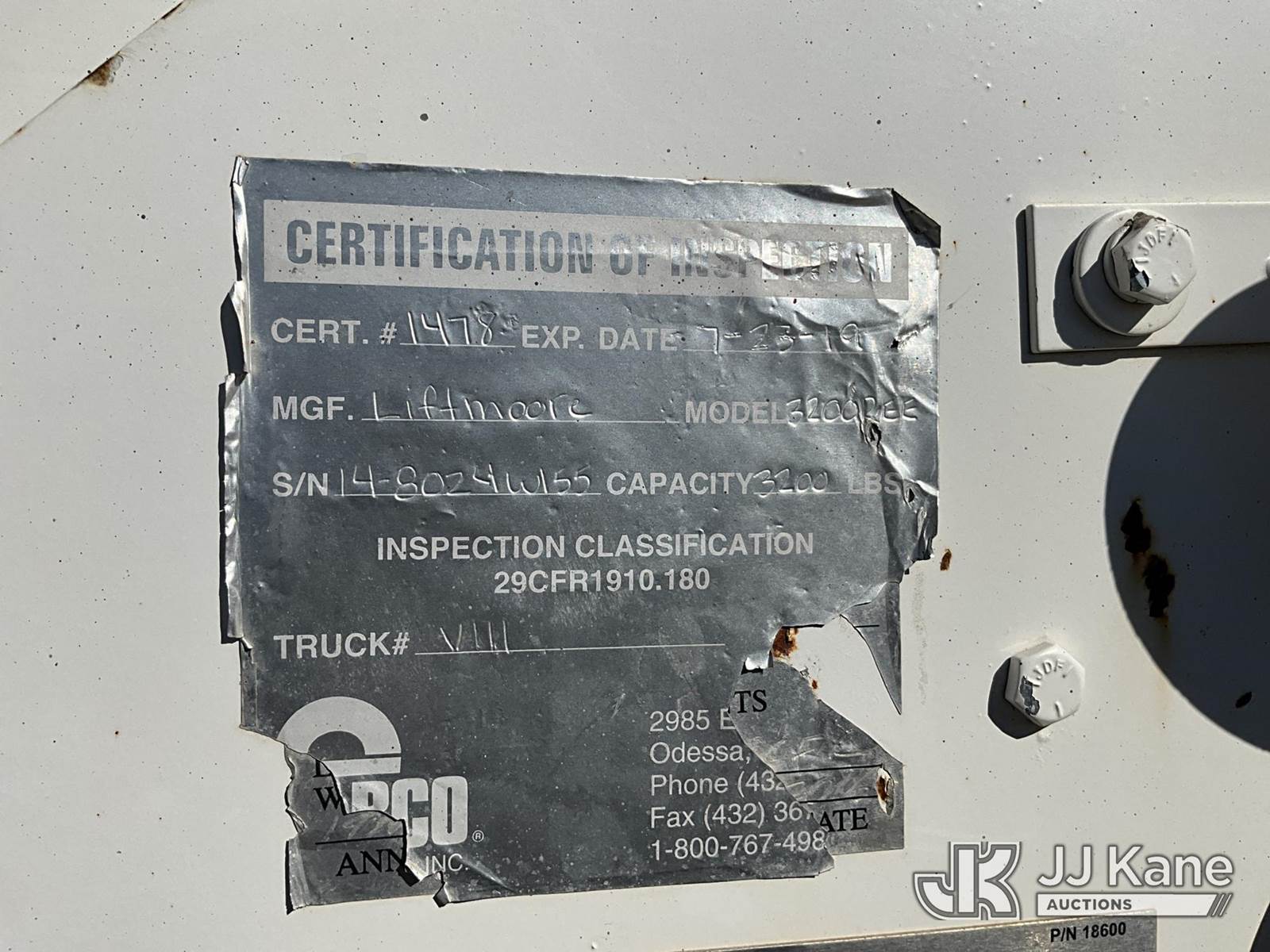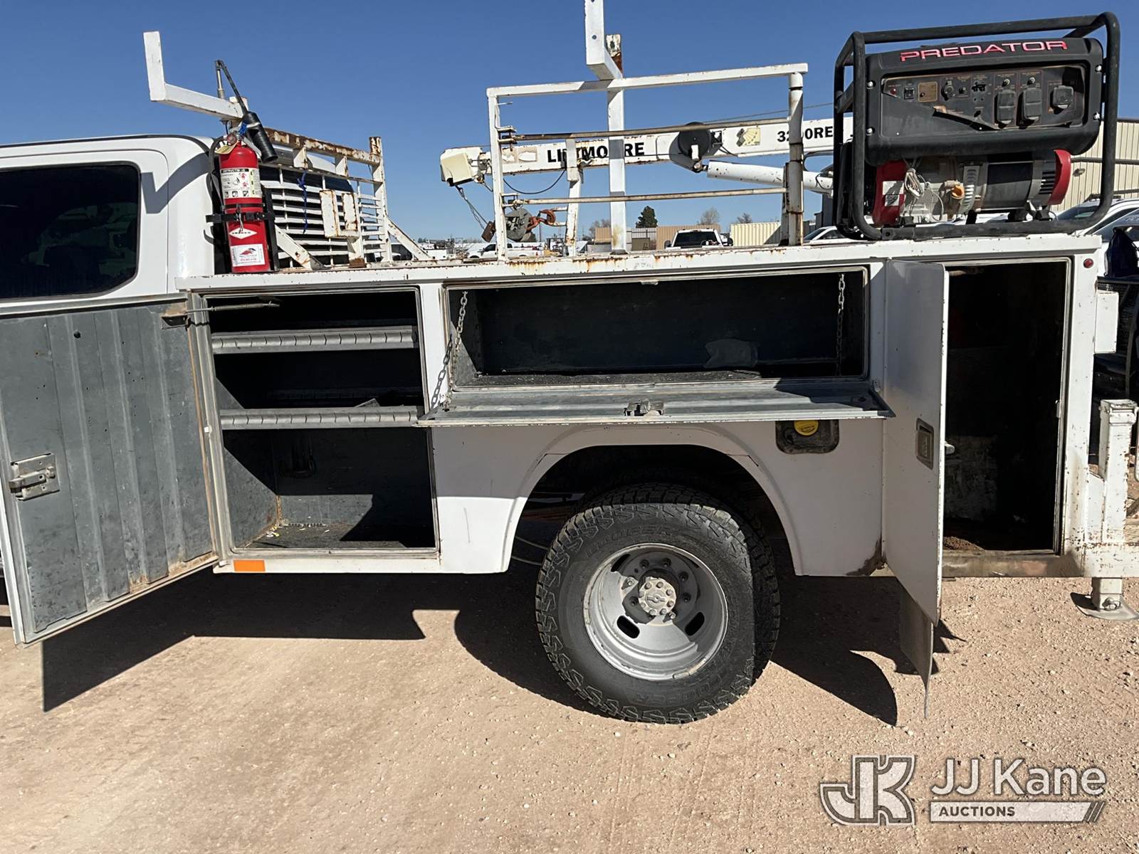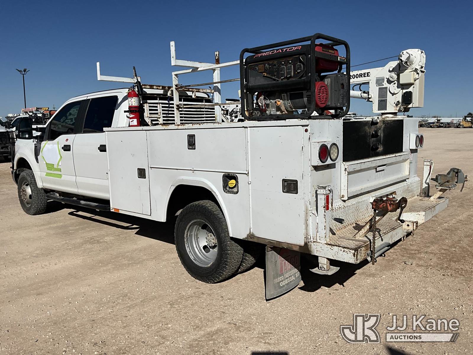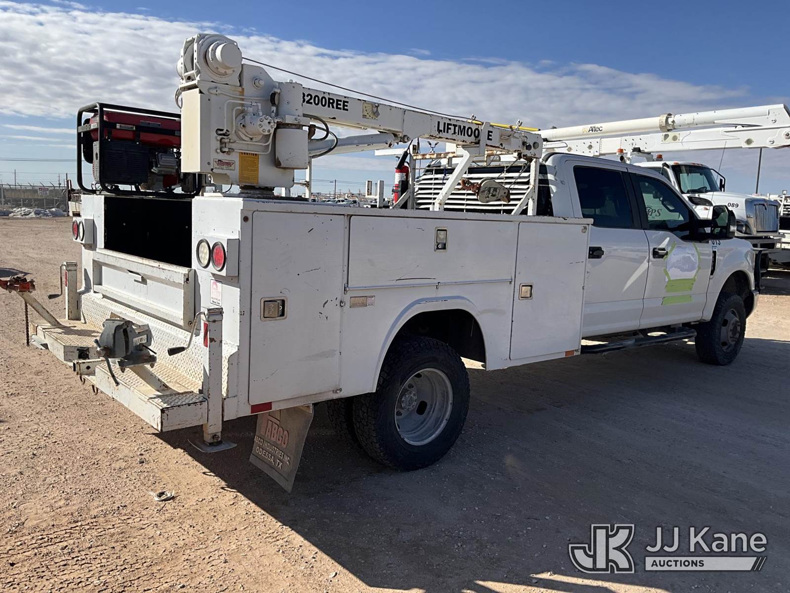 2018 Ford F350 4x4 Mechanics Service Truck, 8-cyl gas, 6-Speed Automatic, A/C, with Liftmoore 3200REE material crane, Predator 6500 generator, (233,823 miles) (Runs & Moves) (Body/Hail Damage) This is a Titled Item NOTE: This unit is being sold AS IS/WHERE IS via Timed Auction and is located in Hobbs, NM. For more information & removal arrangements please contact Cayton Baxley @ 575-552-3121. (Buyer is responsible for removal. Assistance by consignor or JJ Kane Auctions is not assured.)